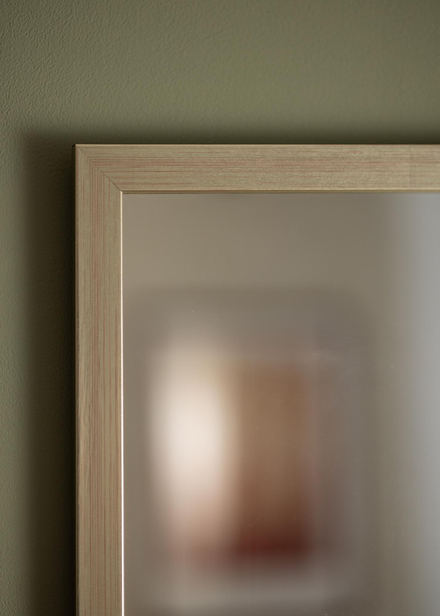 Tämä peili on valmistettu ayospuusta ja maalattu tyylikkäällä hopeansävyllä. Kehys on 22 mm leveä ja siinä on suora profiili, joka luo jokseenkin riisutun kokonaisuuden. Ripusta peili eteiseen, makuuhuoneeseen tai olohuoneeseen ja anna sen heijastaa valoa kauniisti lampuista ja ikkunoista.