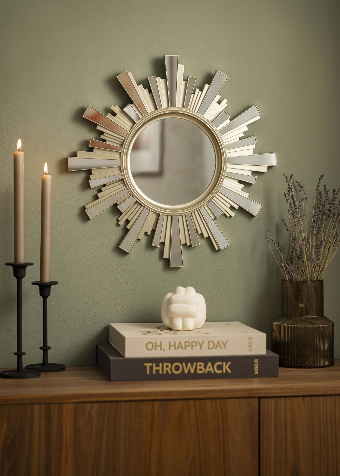 Sijoita peili paikkaan jossa se saa näkyä ja pääsee oikeuksiinsa kauniina koristeena - olohuoneeseen, ruokasaliin tai ehkä eteiseen. Aurinkopeilin voi sijoittaa yksin seinälle tai muitten hienojen seinäkoristeiden kanssa.