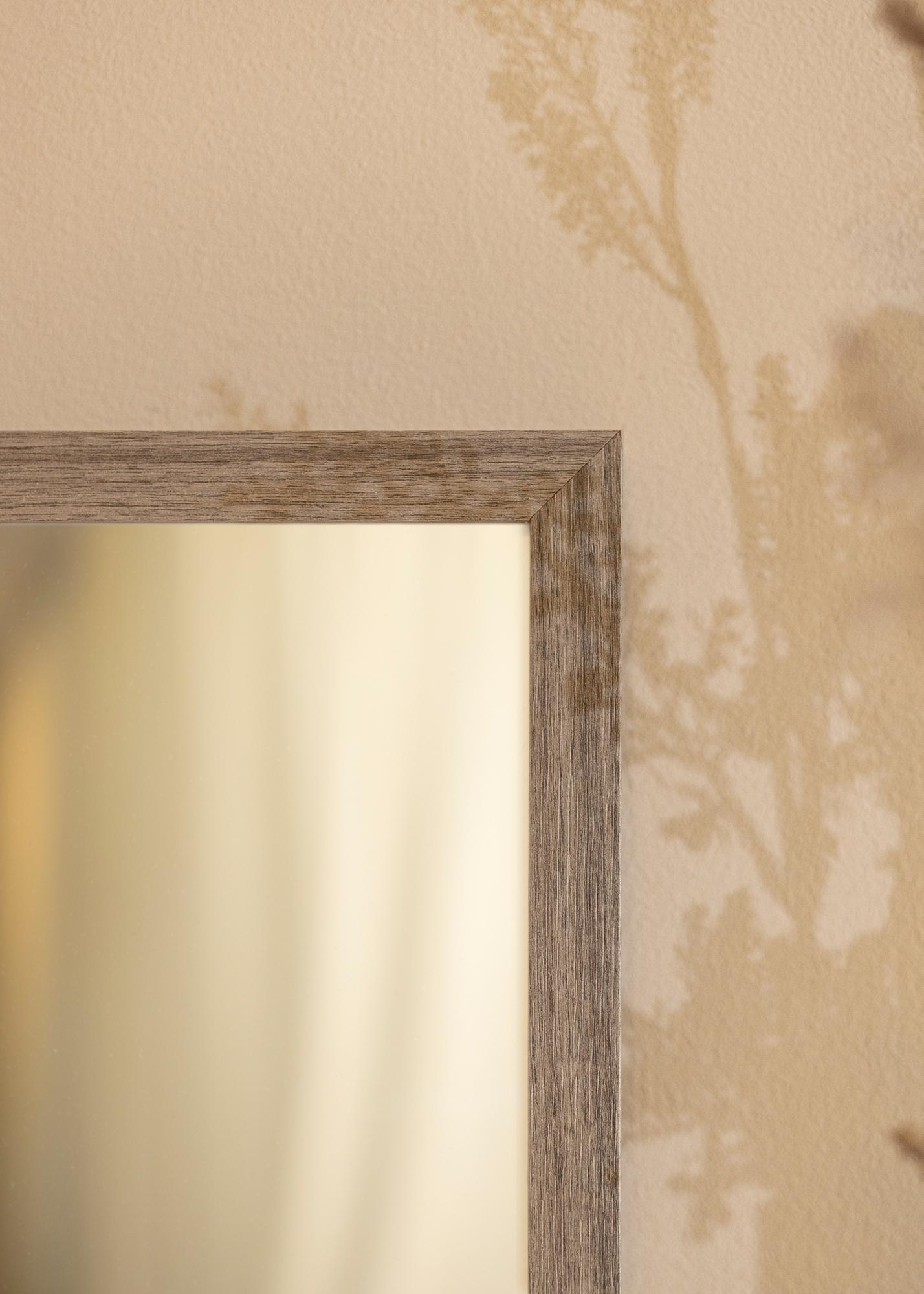 Peilin kehys on 21 mm leveä, mikä antaa kapean ja elegantin profiilin. 38 mm syvyys edistää vankkaa tunnetta ilman, että se vie liikaa tilaa huoneessa. Suorat reunat ja minimalistinen muotoilu tekevät peilistä modernin ja ajattoman, täydellisen niille, jotka haluavat hillityn mutta silti vaikuttavan sisustuselementin.