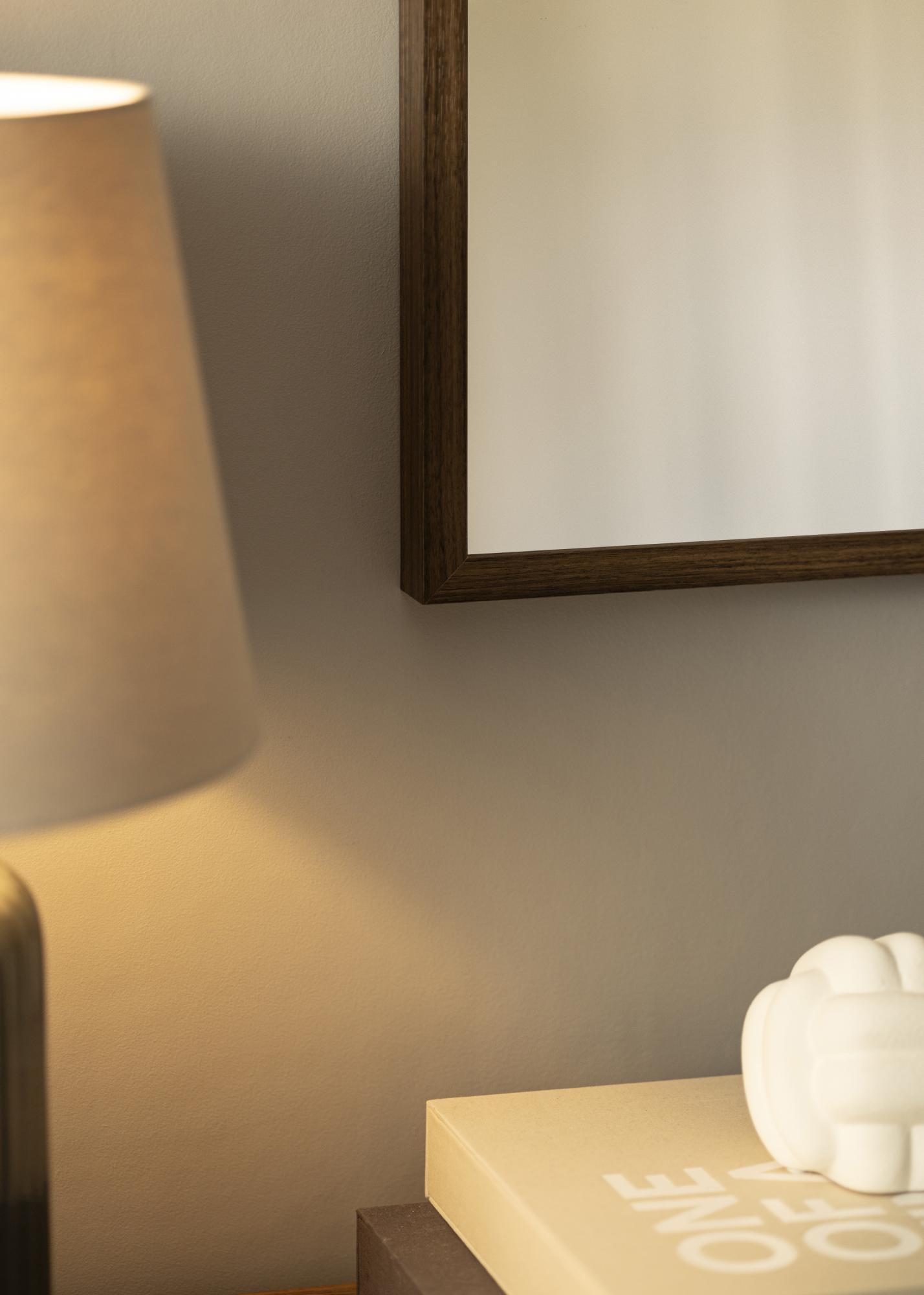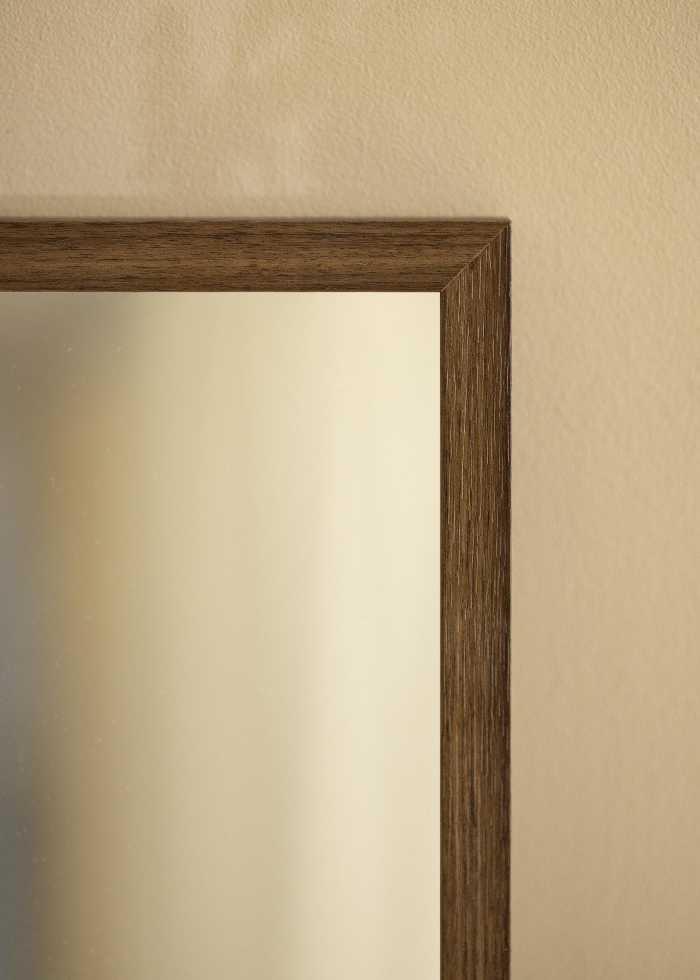 Peilin kehys on 21 mm leveä ja 38 mm syvä, mikä antaa vakaan ja tukevan tunteen kompromissoimatta eleganttia muotoilua. Suorat reunat ja kapea profiili lisäävät modernia ja tyylikästä ilmettä, joka sopii sekä klassiseen että moderniin sisustukseen.