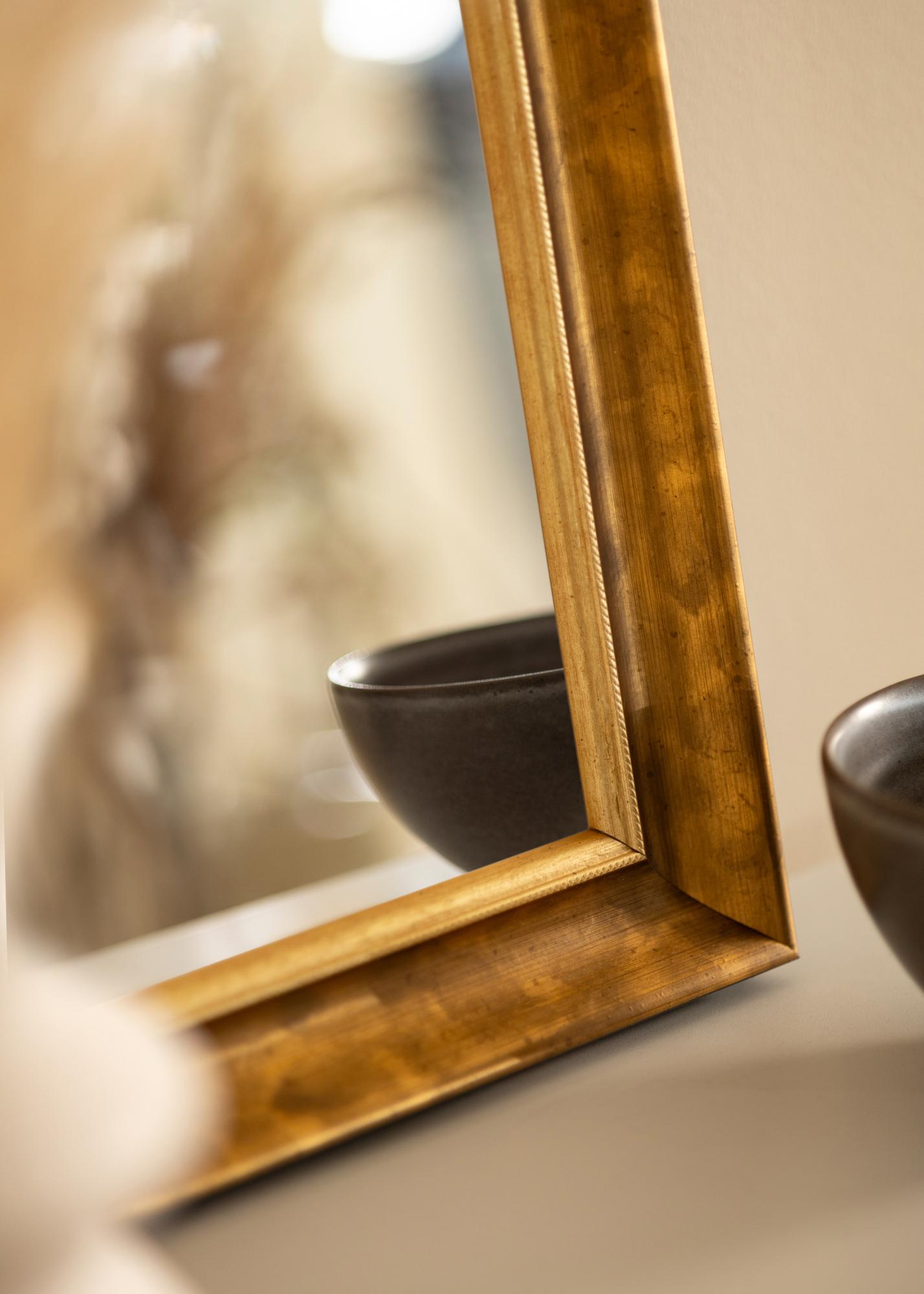 Herkullinen mittatilauspeili, jonka antiikkikullan värin viimeistelee kuparin sävy. Tämä tuote kiinnittää takuulla huomiota leveän ja syvän mallin johdosta.