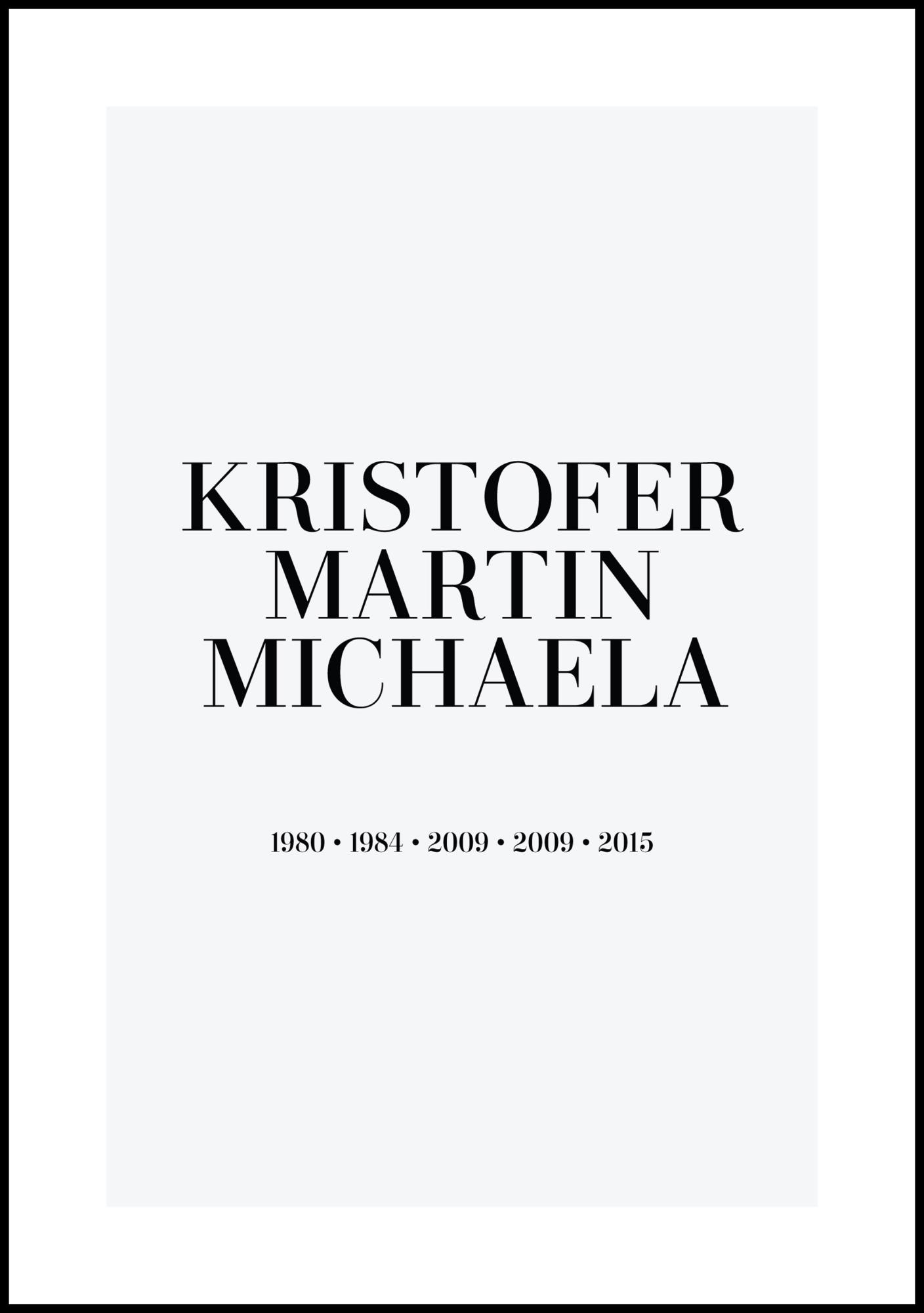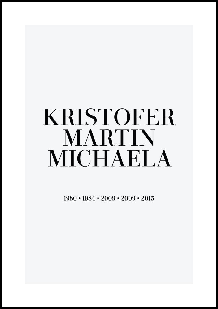 Perhetaulu - 3 Nimeä & Vuotta - Harmaa (21x29,7 cm (A4))
