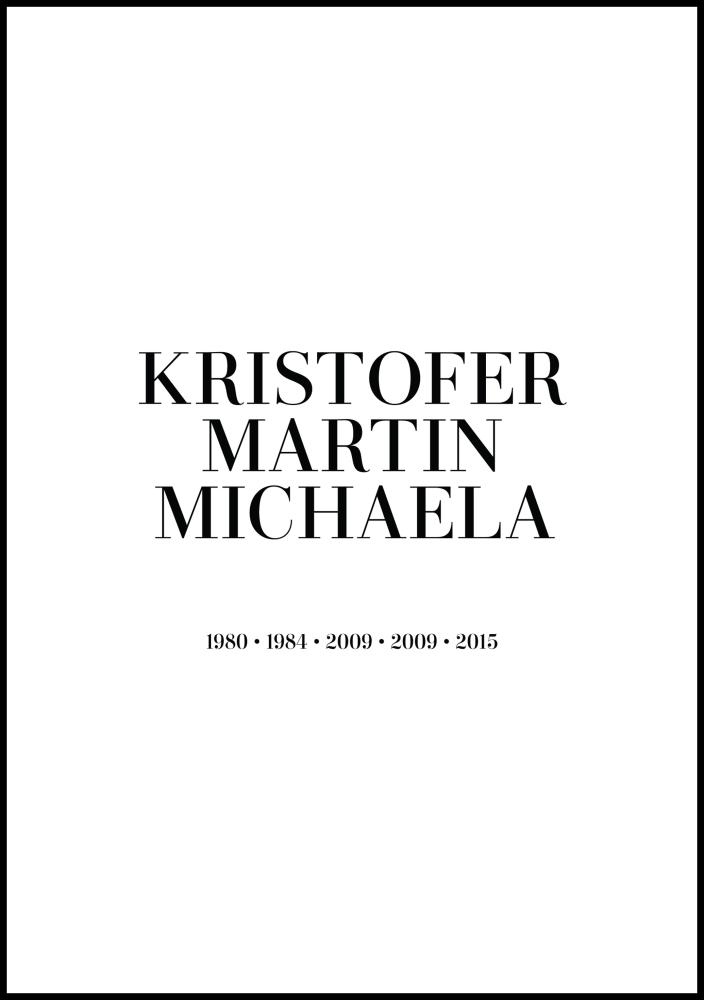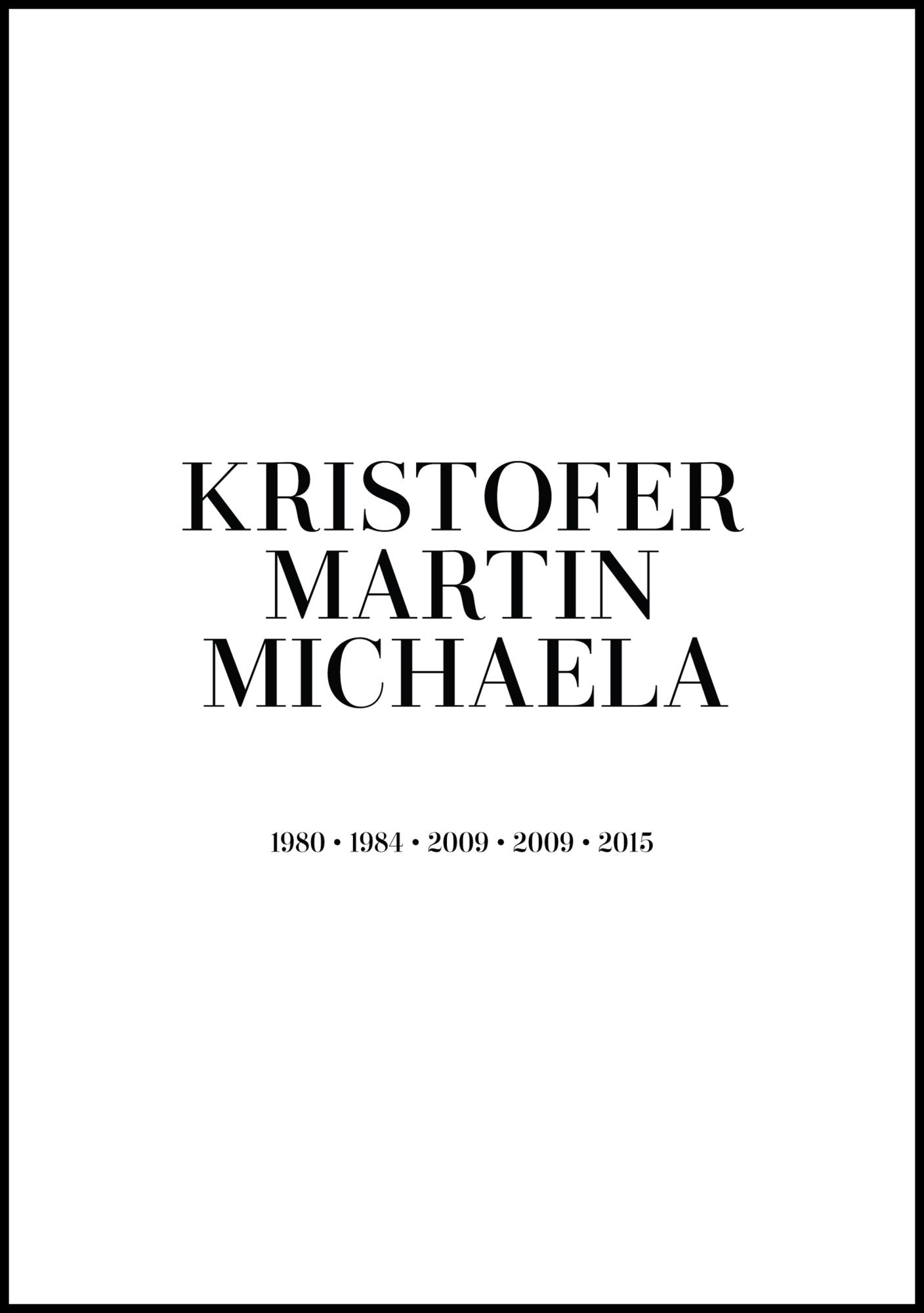 Perhetaulu - 3 Nimeä & Vuotta - Valkoinen (21x29,7 cm (A4))