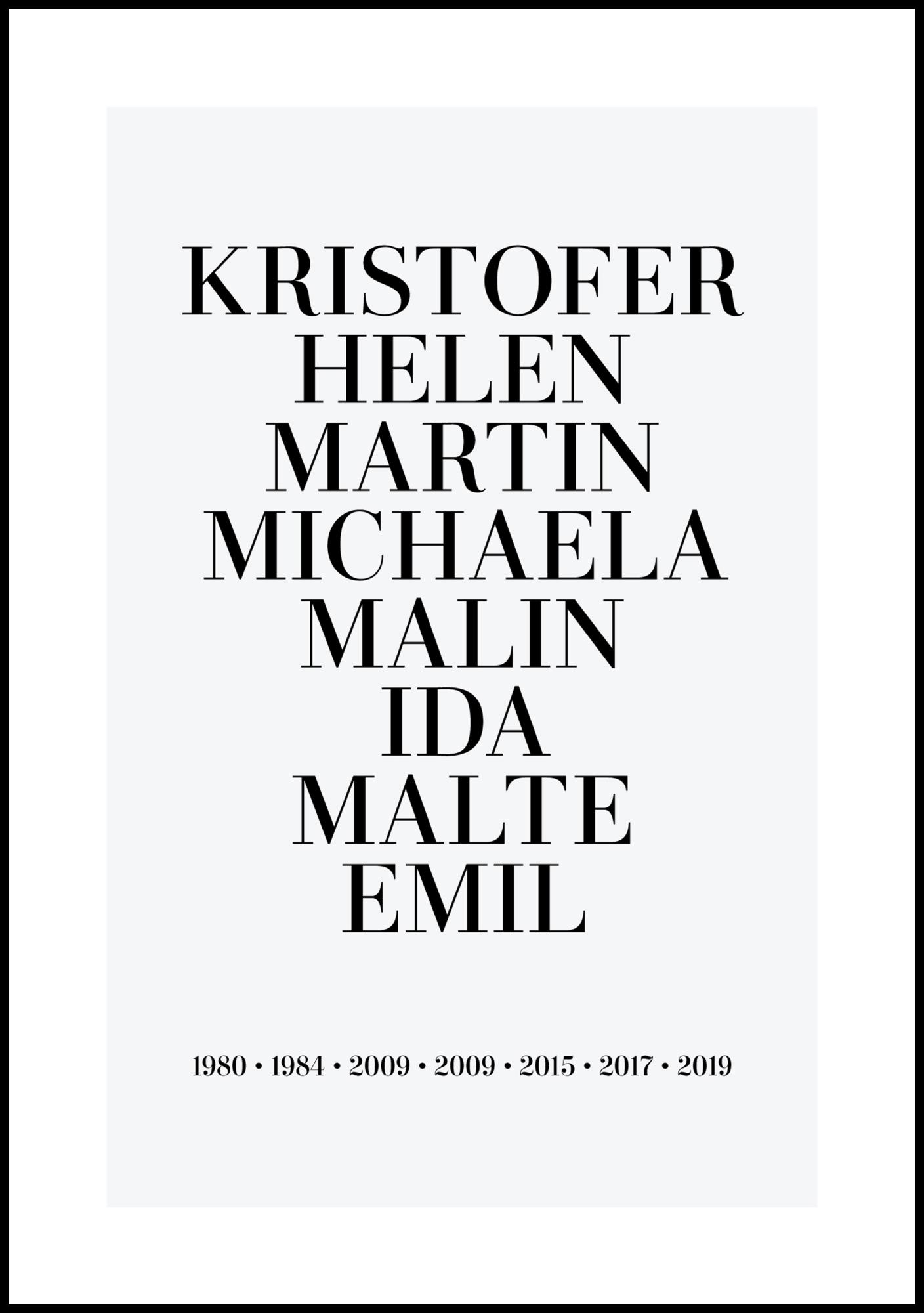 Henkilökohtainen juliste on ainutlaatuinen ja hauska lahja, sekä antaa että saada, ja se jää kauniiksi muistoksi, jota vaalitaan pitkään. Sinun tarvitsee vain täyttää yllä olevat kentät haluamallasi tiedolla, niin luomme sinulle henkilökohtaisen julisteen!