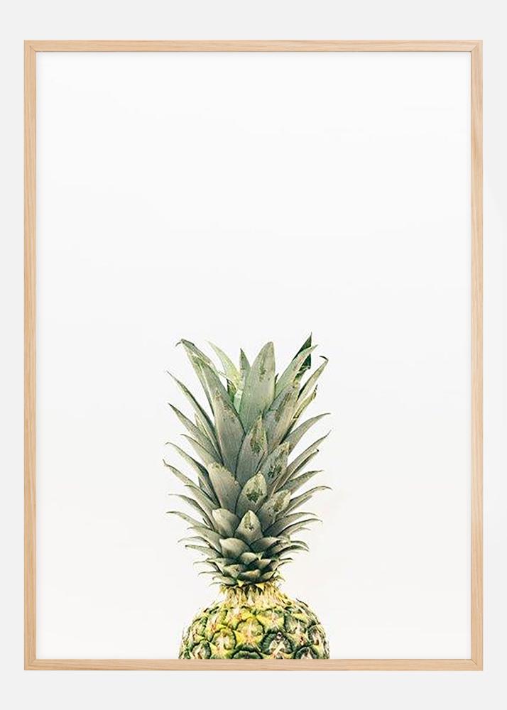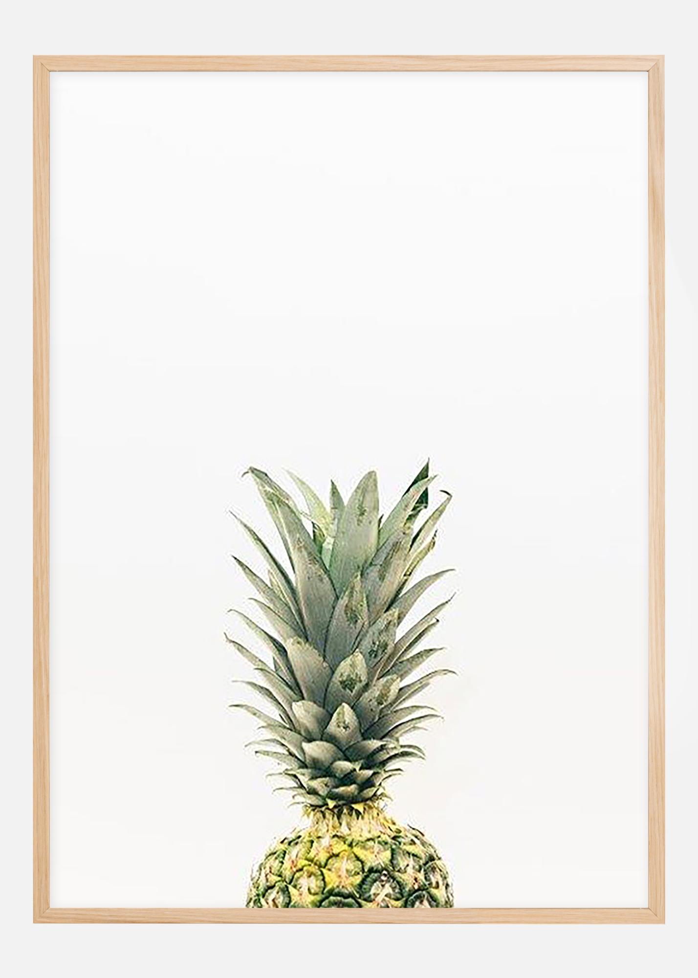 Moderni botaninen juliste ananaksesta valkoista taustaa vasten. Tyylikäs ja hillitty valokuva, joka sopii hyvin sekä keittiön tauluseinälle että olohuoneeseen. Yhdistä mielellään johonkin laajasta kehysket valikoimastamme.