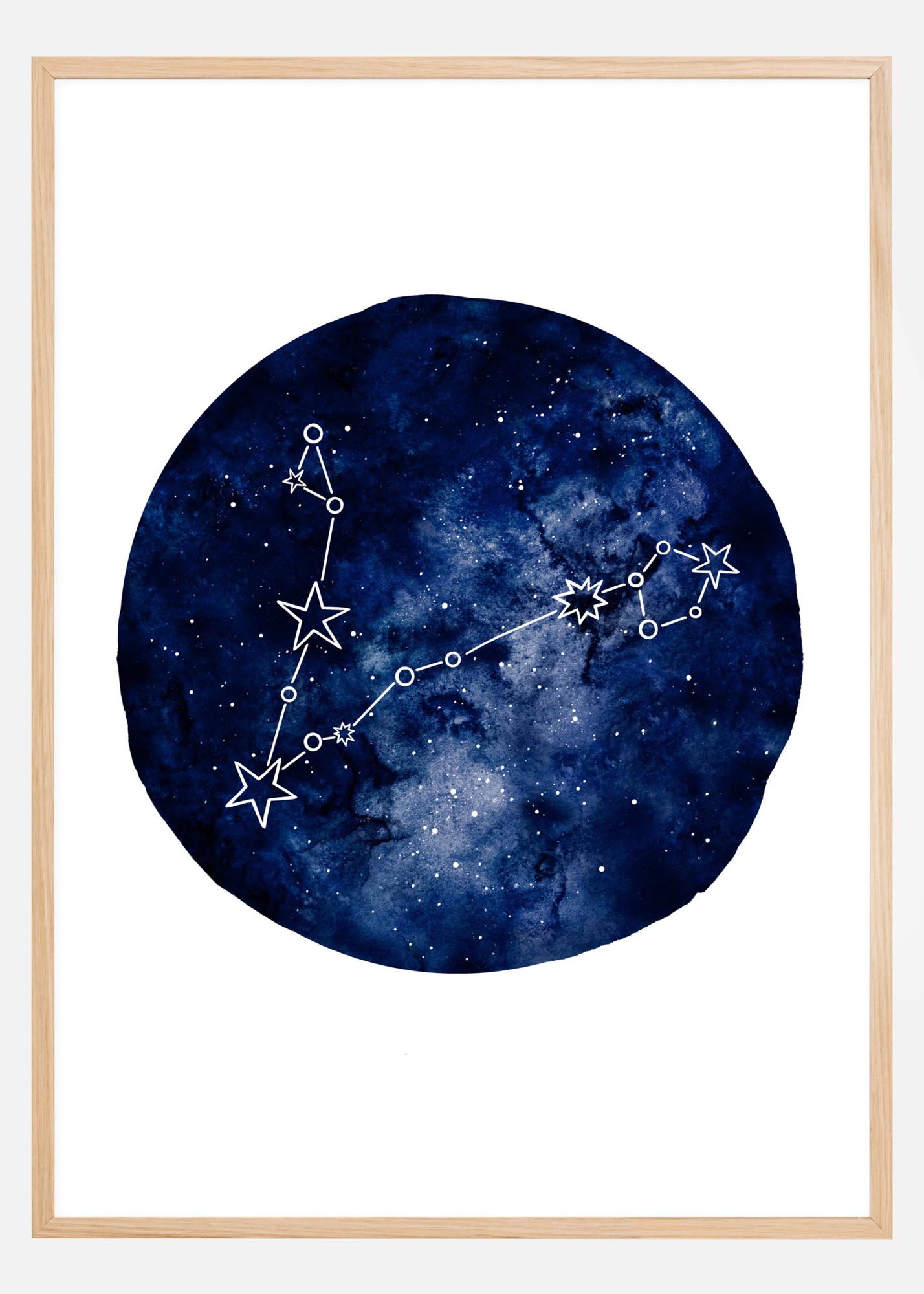 Vaikuttava astrologian kuva, jossa on Kalat -tähtimerkki. Valkoiselle taustalle asetettu tummansininen tähtikuvio on korostettu selvästi valkoisella viidellä tähdellä. Kiehtova kuva kaikille astrologiasta tai tähtitieteestä kiinnostuneille. Täydellinen kuva ripustettavaksi työhuoneeseesi.