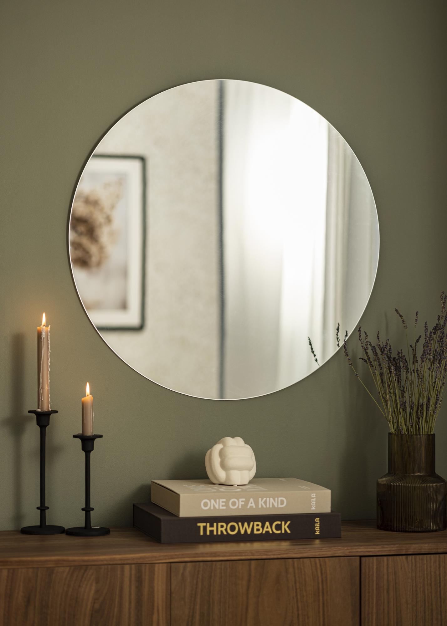 Pyöreä peili koossa 70 cm Ø joka kuuluu pyöreiden peilien. Peili on erittäin ohut ja tyylikäs, ja sopii kaikenlaisiin huoneisiin ja sisustystyyleihin.