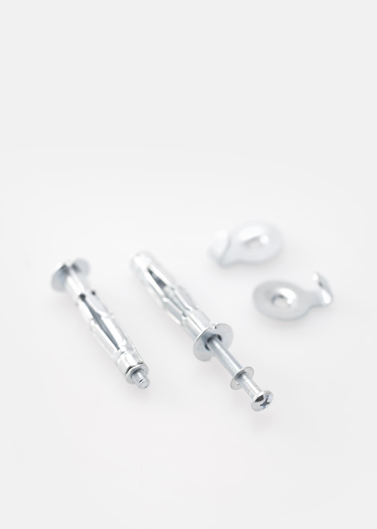2-osaiset tulpat ja M5-ruuvit 13 mm kipsiseinälle. Tulppaan sopii 8 mm ruuvi.