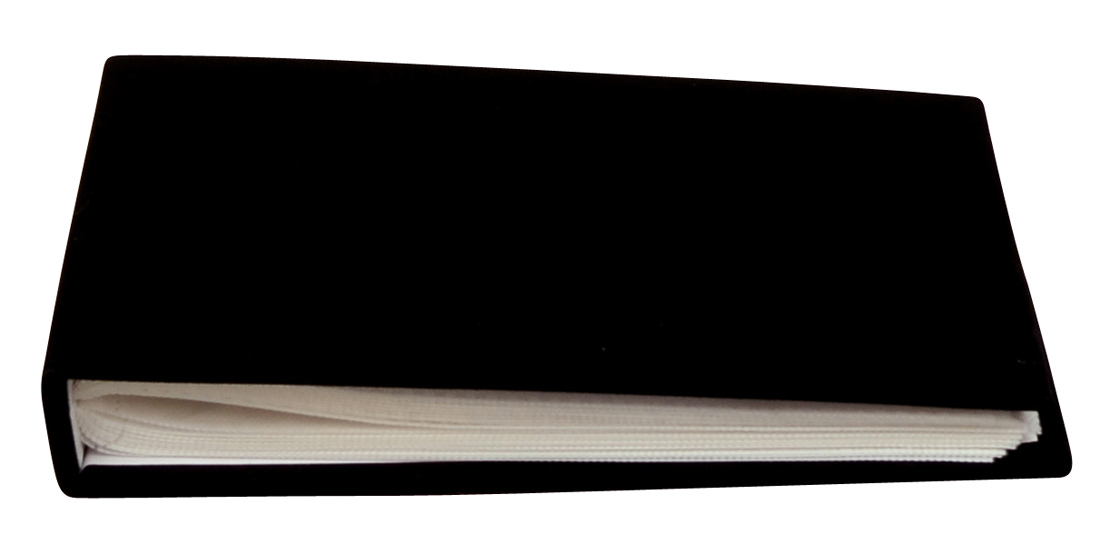 "Sense MINI Musta" -rengaskansio on verhottu punaisella kankaalla, hyvä pitää kädessä ja antaa hienon vaikutelman. Albumiin mahtuu 40 kuvaa, käytännöllisiin 11 x 15 kokoisiin valokuvataskuihin.