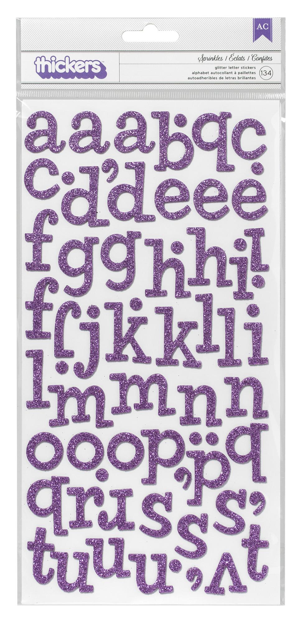 Violetteja tarroja seuraavaan leikekirjaprojektiisi? Meiltä niitä löytyy! Tarrat ovat kimaltavia ja niiden korkeus on 2,5 cm.