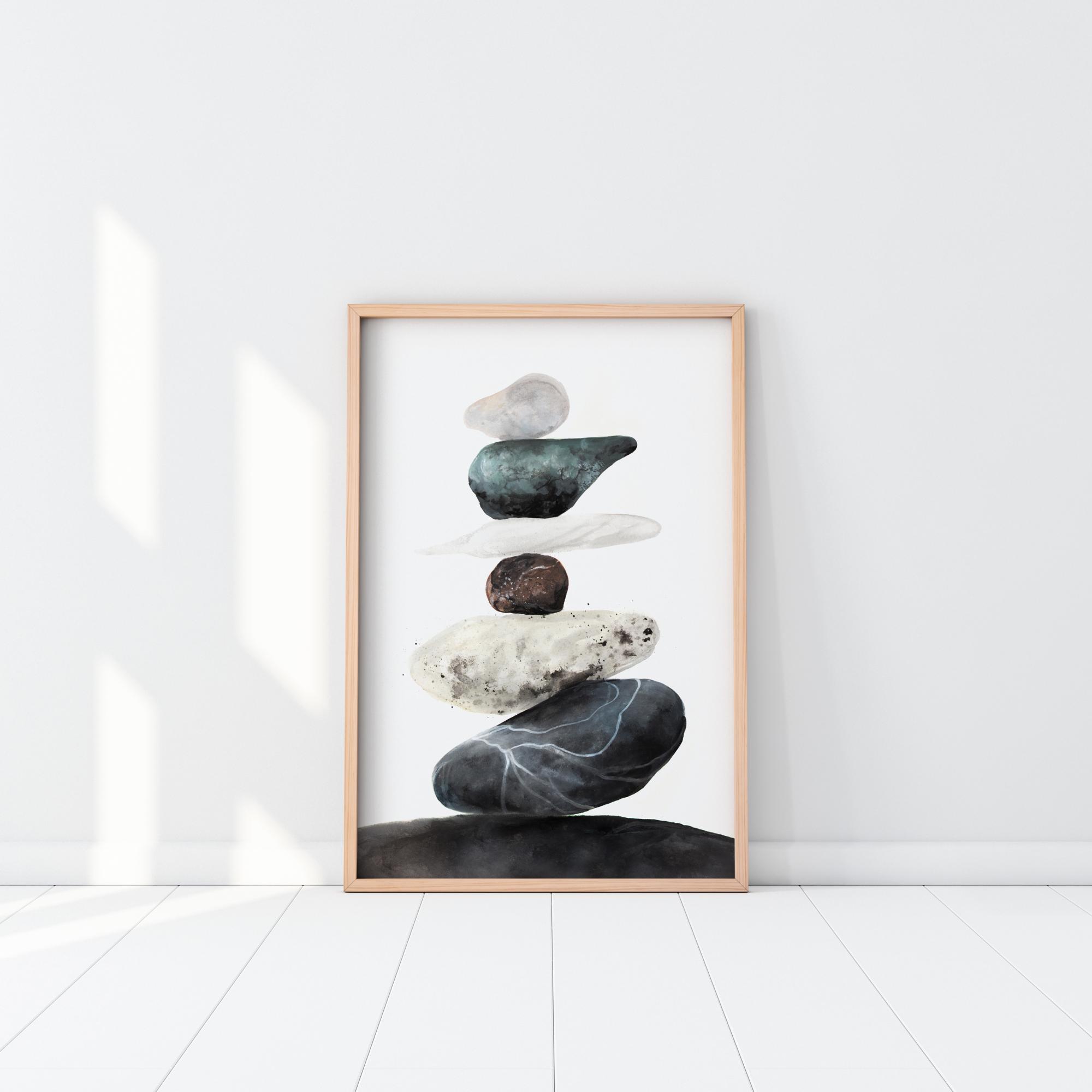 Tyylikästä taidetta kivistä, jotka on maalattu kauniisti kontrastoivissa sävyissä, luonut Emelie Bengtsson (EMELIEmaria). Rauhallinen ja harmoninen juliste, joka on helppo yhdistää muiden suosikkien kanssa suuremmalle tauluseinälle. Sopii useimpiin koteihin ja sisustustyyleihin.