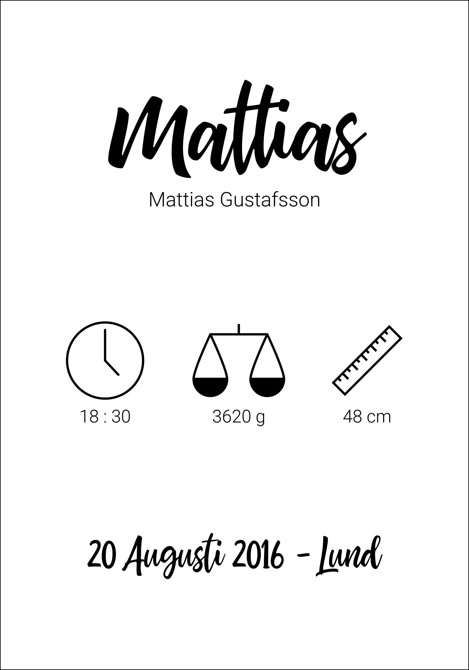 Henkilökohtainen juliste on ainutlaatuinen ja hauska lahja, sekä antaa että saada, ja se jää kauniiksi muistoksi, jota vaalitaan pitkään. Sinun tarvitsee vain täyttää yllä olevat kentät haluamallasi tiedolla, niin luomme sinulle henkilökohtaisen julisteen!