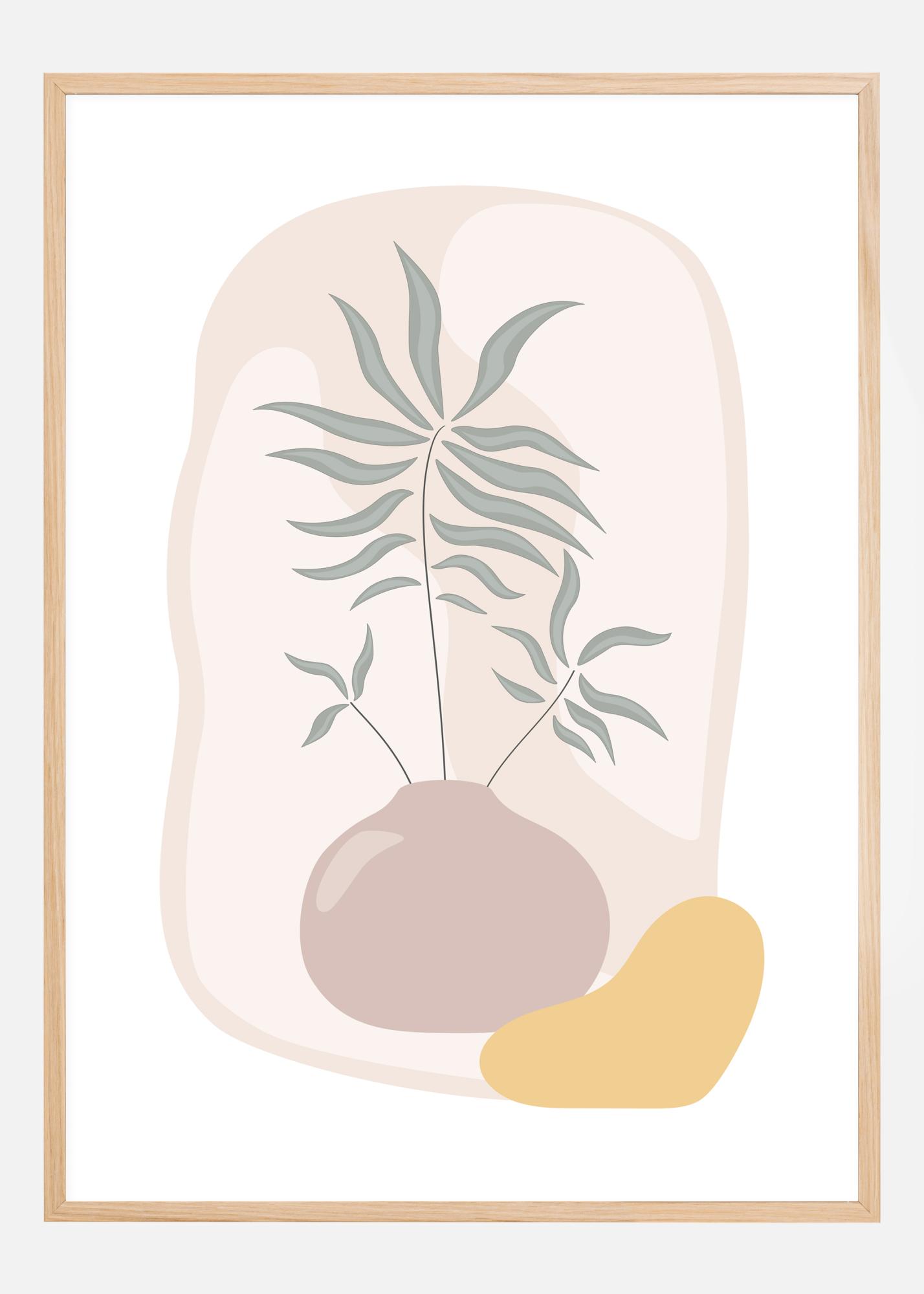 Tyylitelty maljakkojuliste, josta pulpahtaa esiin vihreä kasvi. Muut oudot muodot ja värit täyttävät taustan ja tekevät tästä mielenkiintoisen mutta hieman abstraktin teoksen. Yhdistä samantyylisen piirroksen kanssa ja luo oma minigalleriasi kotiin.