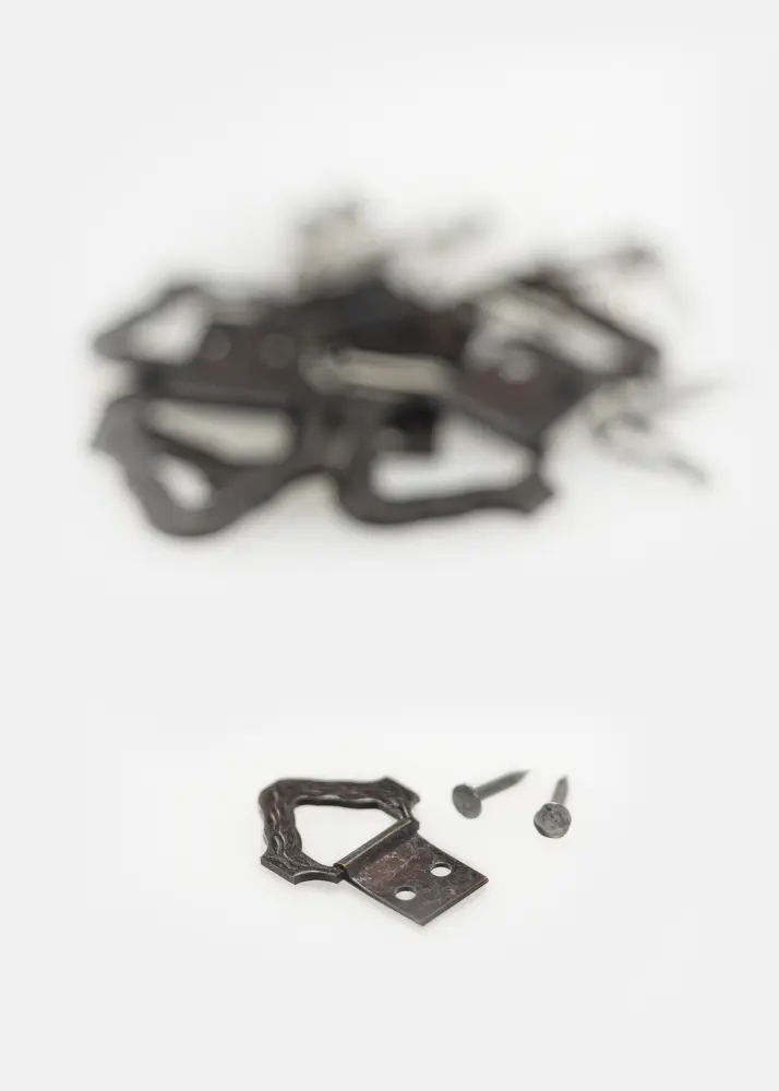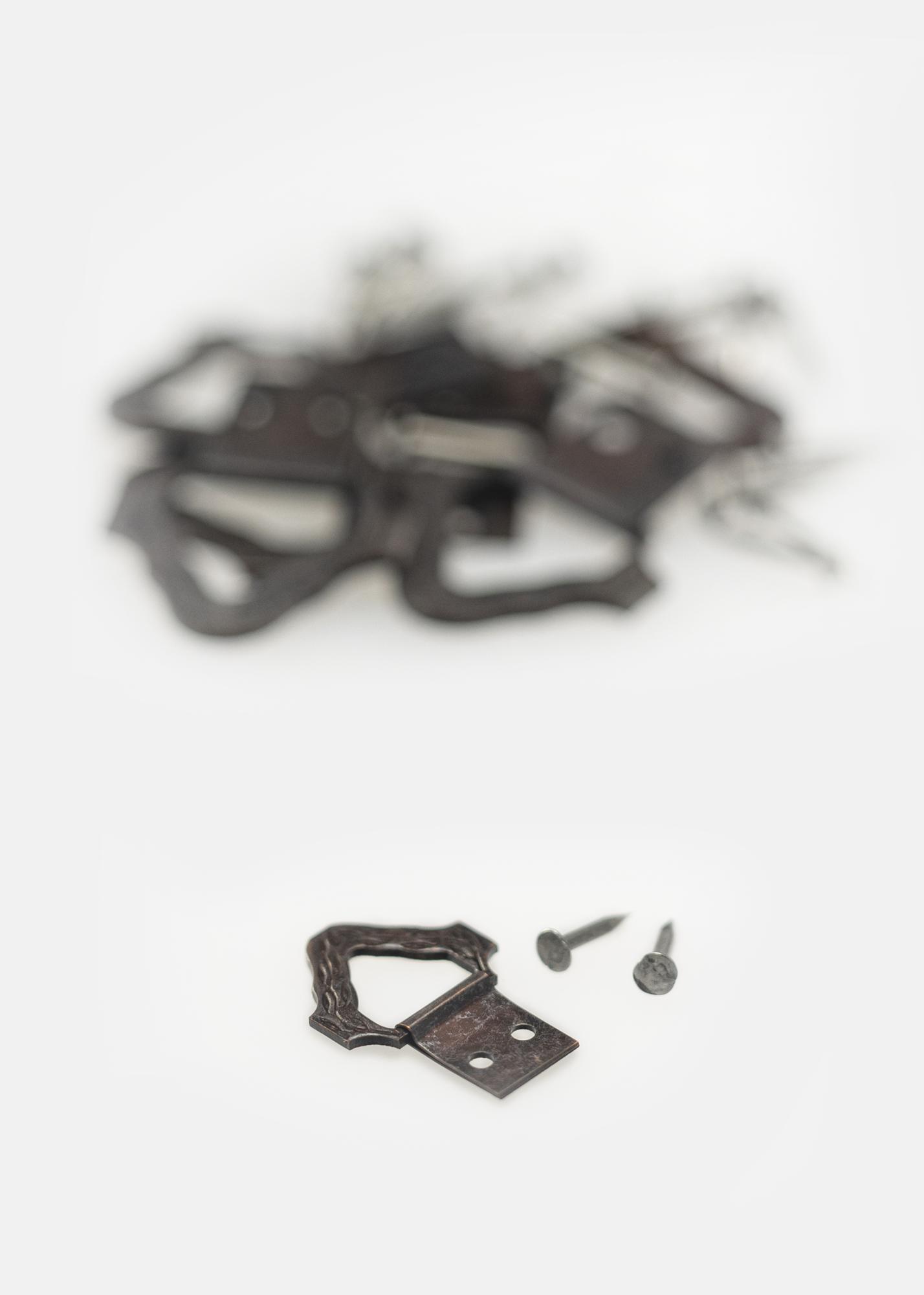 Hieman ainutlaatuisempi kolmioriipus, joka naulataan kehyksen taakse. Täydellinen vanhemmille ja hienommille kehyksille. Taululenkki tulee kehyksen yläpuolelle. Voit vapaasti päättää, käytätkö yhtä tai kahta kappaletta. Tuote on tehty hieman suuremmille kehyksille (maksimimitat: 24x30 cm).