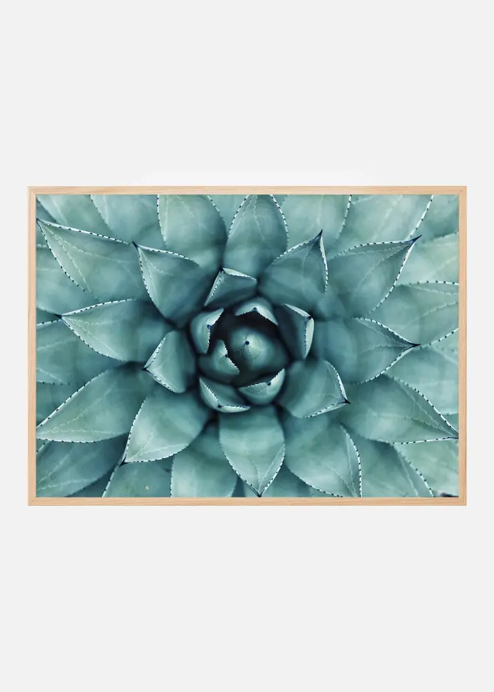 Graafinen juliste, jossa on kaunis lähikuva sinivihreästä kaktuksesta. Lehtien muoto tummilla piikeillä ja häivytetyllä turkoosilla värillä luo puhuttelevan vaikutelman. Tämä tuote sopii kaikenlaiseen sisustukseen. Tumma taulukehys sopii hyvin yksin seinälle, mutta voit yhdistellä myös muihin kasviaiheisiin tauluihin.Valokuva tulostetaan Hahnemuhle Photo Luster 260-grammaiselle paperille.Kehys ei sisälly julisteeseen, mutta sen voi tilata erikseen.
