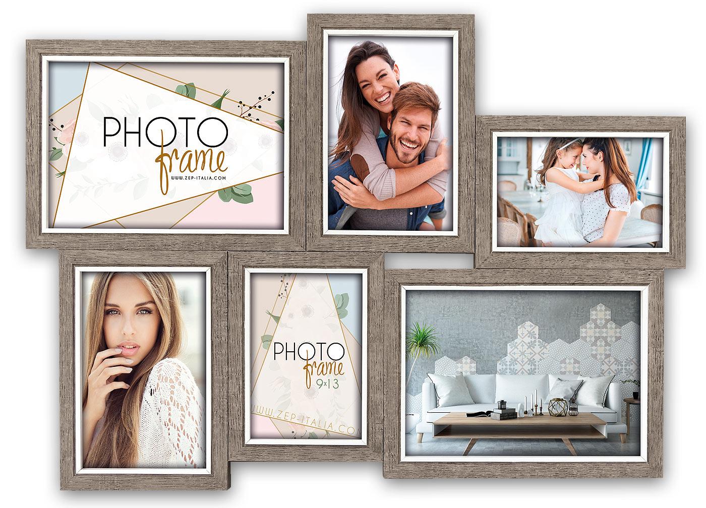 Kehitä suosikkivalokuvasi ja säilytä ne yhdessä hienossa kollaasikehyksessä seinällä! Tämä kollaasikehys on valmistettu puusta ja siinä on paikat 6 kuvalle. 2 kappaletta 10x15, 2 kappaletta 9x13 cm ja 2 kappaletta 13x18 cm. Kehyksen ulkomitat ovat 33,5x48,5 cm. Sisältää seinäkiinnikkeen.
