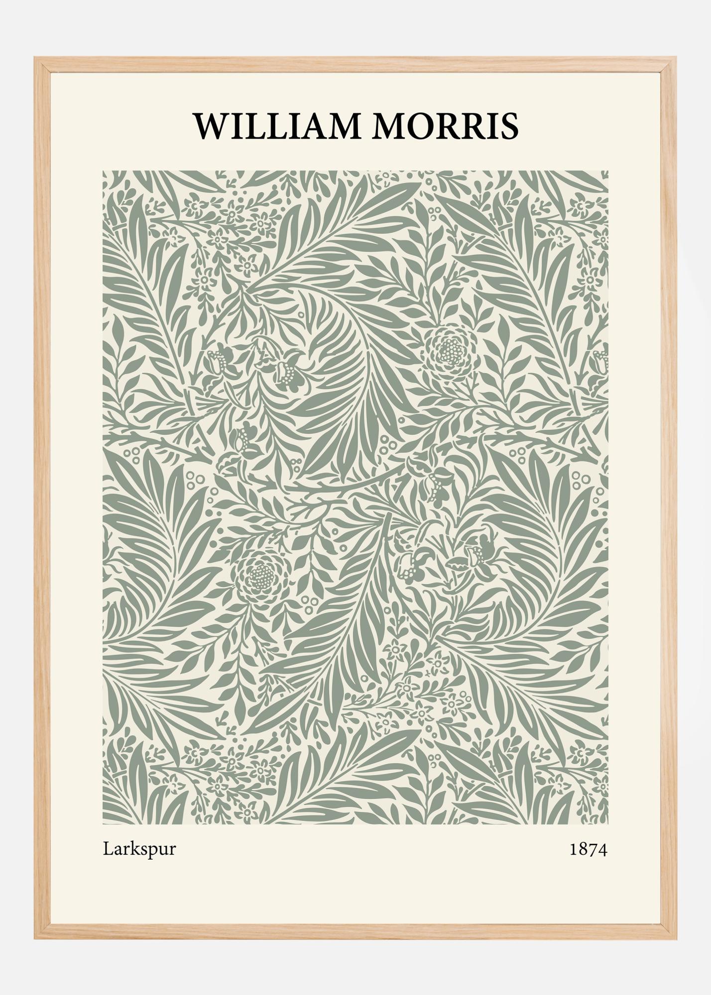 Tämä William Morrisin juliste, nimeltään "Larkspur" vuodelta 1874, esittelee pyörteilevän floran meren kiehtovassa ja perusteellisesti suunnitellussa kuviossa. Jokainen tämän yksityiskohtaisen kuvion elementti on kattavasti yhteen kietoutunut, luoden eloisan ja vangitsevan vaikutelman. Tämä printti olisi erinomainen yksityiskohta kodissa, joka arvostaa taidekäsitöitä ja luonnonläheistä estetiikkaa Arts and Crafts -liikkeestä.