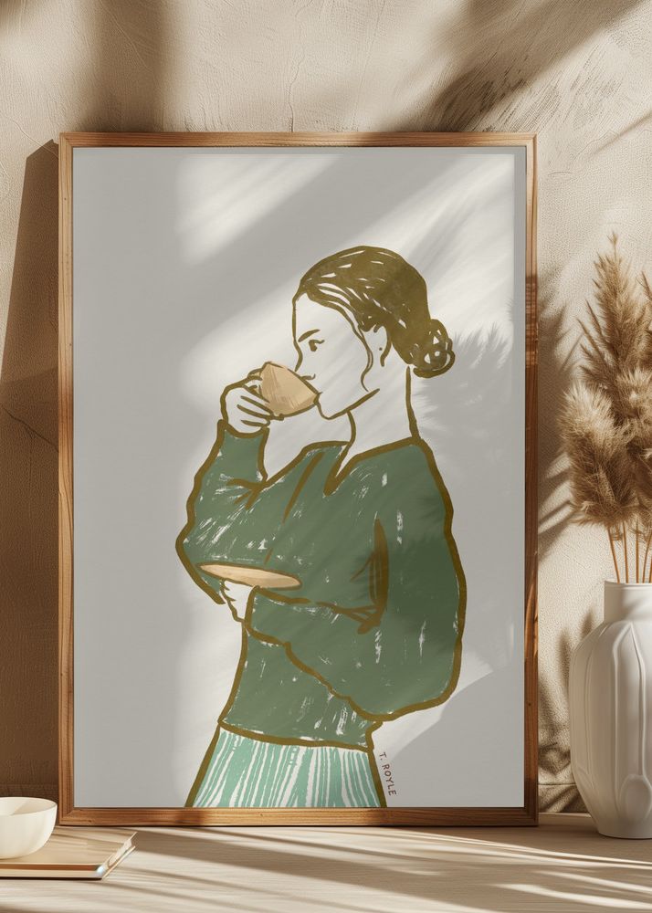 https://www.bga.fi/Woman-Drinking-Tea-in-Green-Juliste-21x29_7-cm-A4