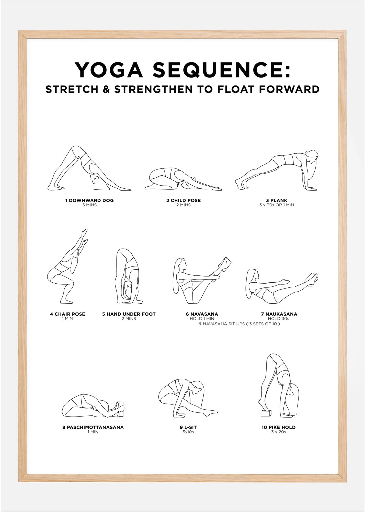Tässä julisteessa on tyylikäs ja pelkistetty muotoilu, minkä lisäksi se on todella hyödyllinen, jos haluat oppia joogaamaan venyttelyyn ja voimaan keskittyen. Juliste nimittäin näyttää selkeästi sen, kuinka näihin joogaamisen osa-alueisiin keskittyvät joogasarjan asennot tulee suorittaa, ja kuinka kauan kussakin asennossa tulisi pysyä. Trendikkäät julisteet jotka ovat sovitettu edullisesti muihin motiiveihin tauluseinän luomiseen. Älä unohda täydentää meidän tyylikäistä kehyksien tai juliste ripustin kanssa.