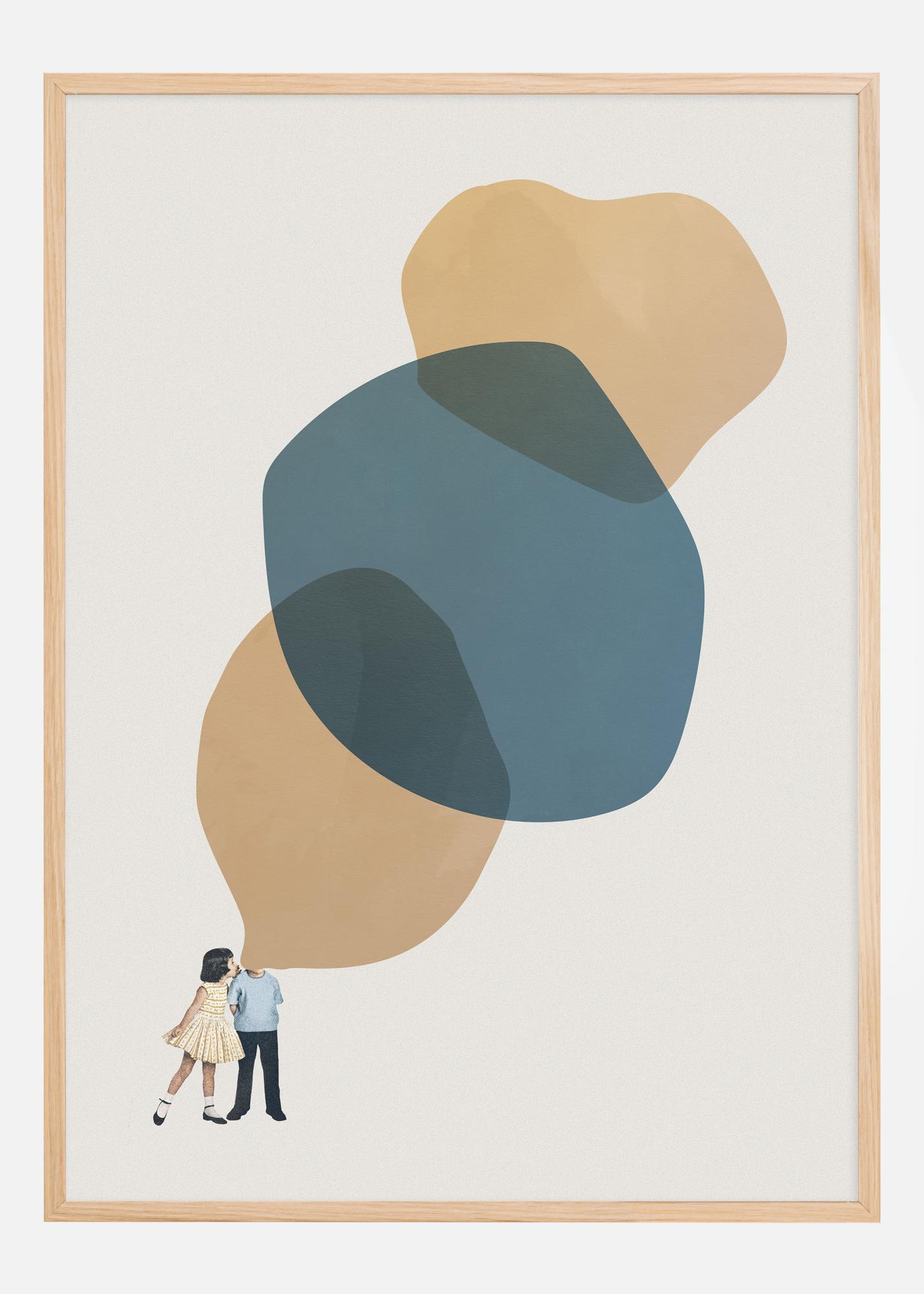 Tämä herkkä juliste vangitsee intiimin hetken kahden lapsen välillä, jotka seisovat lähellä toisiaan ja jakavat kuiskauksen. Kuvio esittää nämä lapsihahmot pehmeiden ja päällekkäisten abstraktien muotojen ympäröiminä, jotka luovat lämpimän syleilyn tunteen kaksikon ympärille. Lasten luottavainen vuorovaikutus on kuvattu herkkyydellä, joka herättää muistoja lapsuuden salaperäisistä leikeistä ja hiljaisista sopimuksista. Tämä printti kutsuu rauhan ja salaisuuksien maailmaan ja muuttuu kiehtovaksi tarinaksi seinällä missä tahansa huoneessa.