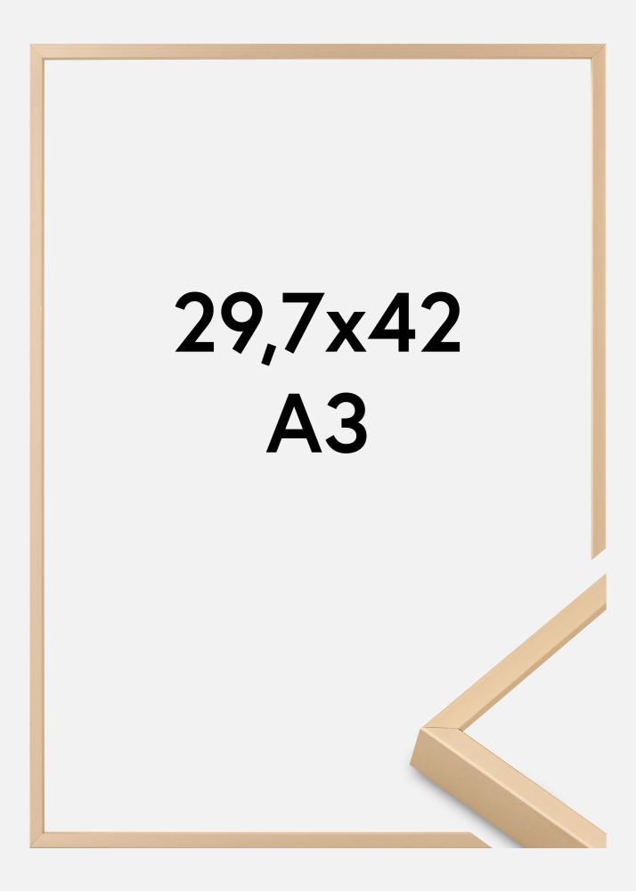 Muunna suosikkikuvasi ja taideteoksesi tyylikkäiksi katseenvangitsijoiksi tällä tyylikkäällä messinkikehyksellä. Koko 29,7x42 cm (A3) tekee siitä täydellisen rakastetuimpien aiheidesi esille tuomiseen. Tämä taulunkehys on valmistettu korkealaatuisesta alumiinista ja siinä on sileä, mattapintainen viimeistely hienostuneessa messingin sävyssä, joka antaa modernin ja minimalistisen vaikutelman.
