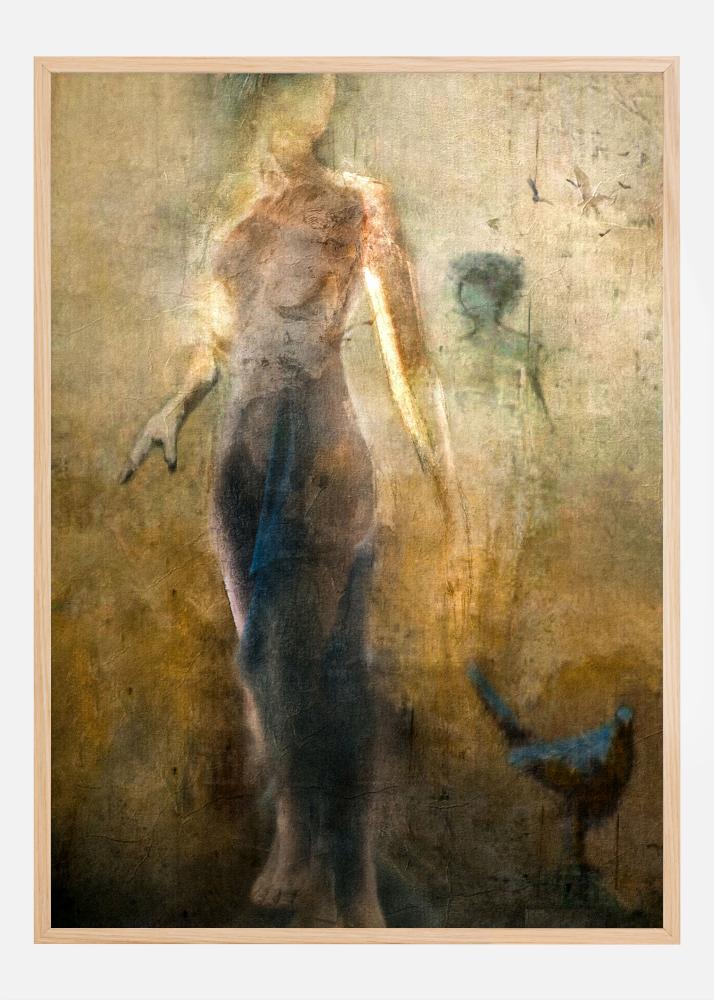 Herätä huomio tällä mystisellä ja suggestiivisella julisteella, joka näyttää kertovan tarinan visuaalisen ulkopuolella. Motivi tutkii identiteetin ja muistin teemoja hahmon kautta, joka nousee grunge-vaikutteisesta taustasta. Taideteoksen abstrakti elementti syntyy hahmon diffuusiosta, melkein kummitusmaisesta ilmestymisestä ja taustalla olevan siluetin hienovaraisista vihjeistä, kun taas yksinäinen lintu näyttää leijuvan vapaasti.