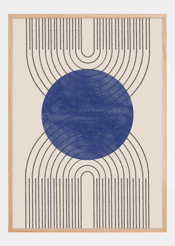 Luo rauhallinen ja koottu tunnelma huoneeseesi abstraktilla julisteellamme, joka yhdistää pehmeitä linjoja ja rohkeita värejä. Keskellä oleva suuri sininen ympyrä antaa voimakkaan rauhallisuuden tunteen ja on kuin portaali toiseen maailmaan, kehyksenään sarja keskittymisiä kaaria, jotka luovat arkkitehtonisen tunteen. Tämä taideteos sekoittaa perinteen ja moderniuden ja tarjoaa rauhallisen tasapainon ympäristöösi.
