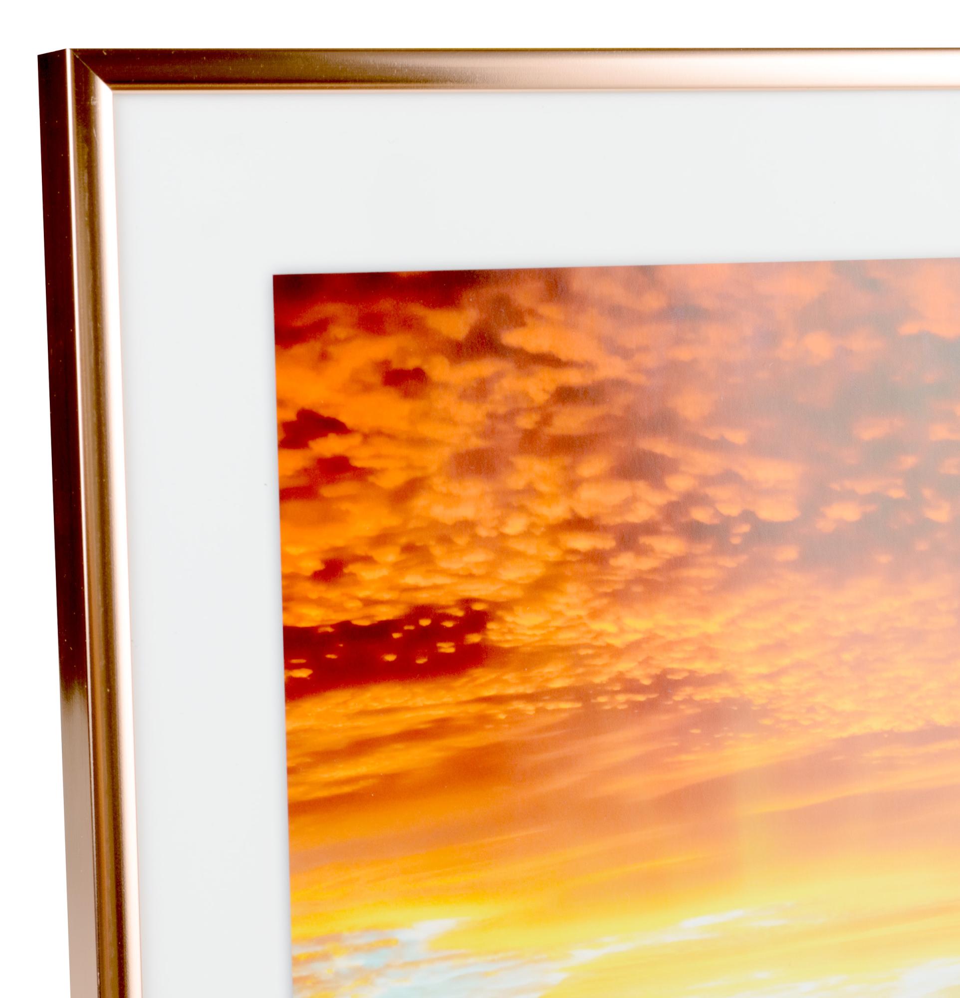 Hyvännäköinen kuparinvärinen alumiininen valokuvakehys hienoimmille valokuvateemoille. Tämä kehys tekee upean sisustusyksityiskohdan. Se on hyvännäköinen olohuoneeseen, ja sopii mainiosti myös makuuhuoneeseen. Vain mielikuvituksesi on rajana!
