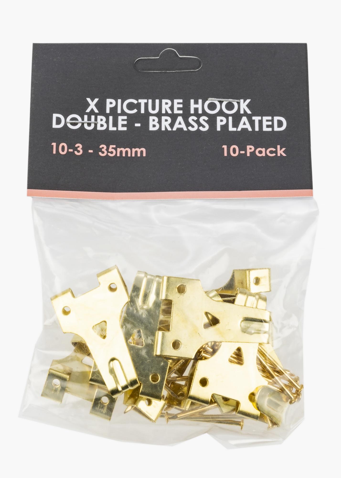 Tupla X-koukku puu- ja kipsiseinään. Ripustettava maksimipaino 10 kg. Messingin värinen. Jos kaipaat neuvoa taulun ripustamiseen kipsiseinälle X-koukulla lue ohjeemme – Taulujen ripustus kipsiseinälle -