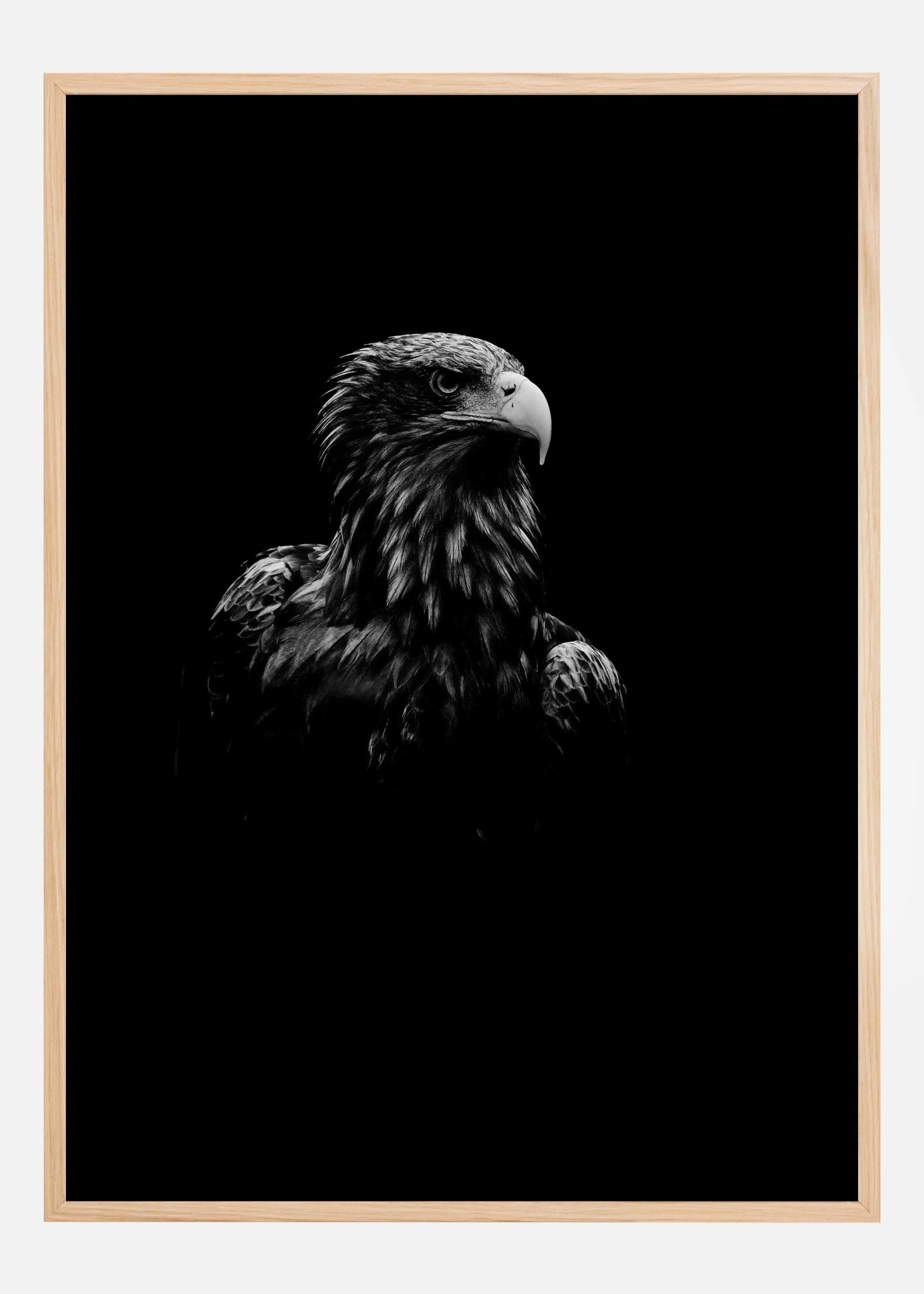 Tämä dramaattinen juliste esittelee mahtavan kotkan, jonka ylpeä profiili ja intensiivinen katse on vangittu tummalle taustalle. Kotkan voimakas esitys korkealla kontrastilla antaa tunteen voimasta ja hillitsemättömästä vapaudesta. Se on ajaton kuva, joka puhuu meille arvokkuudesta ja majesteettisuudesta, joita luonnon petoeläimet omaavat.