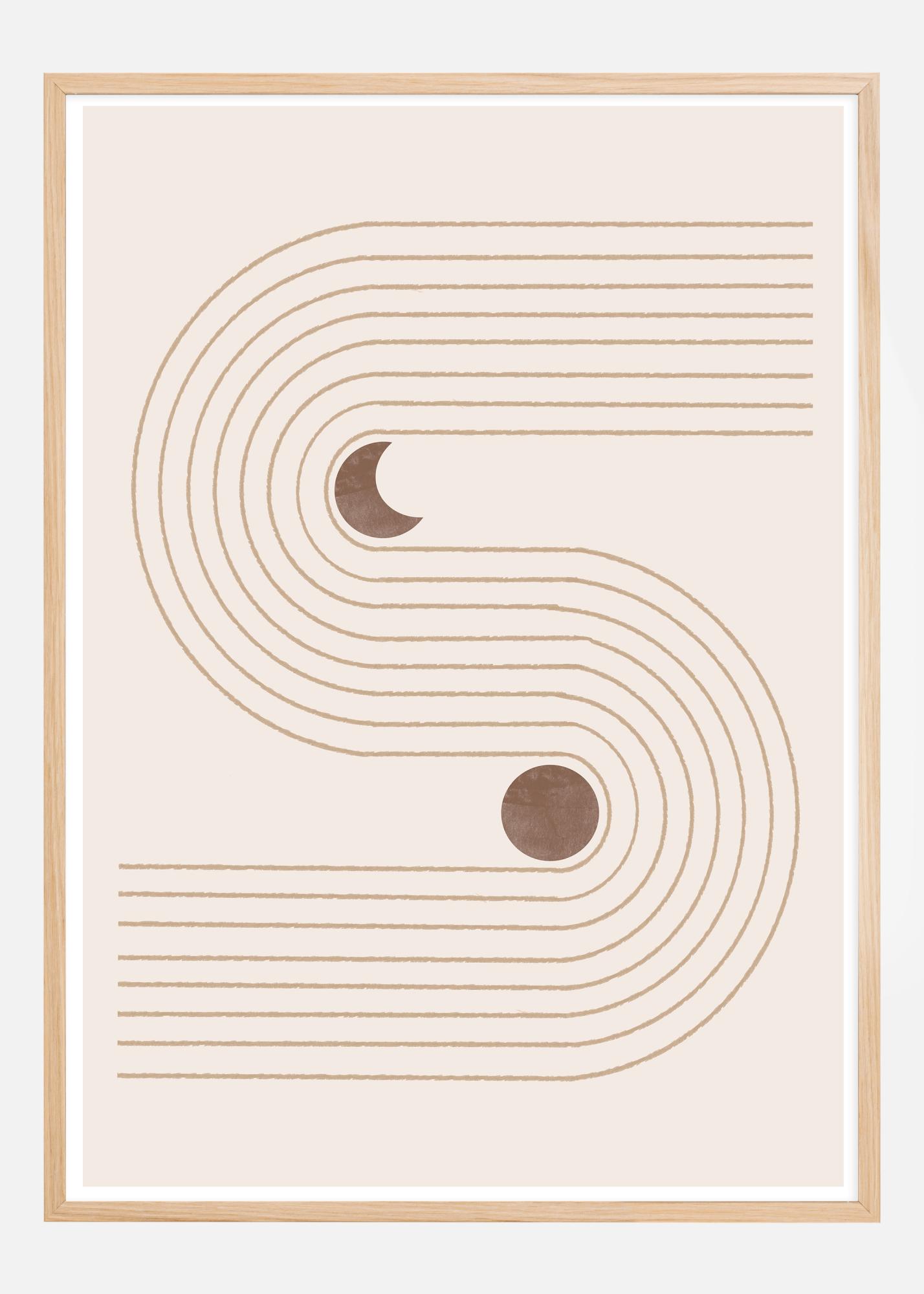 Tämä juliste tarjoaa minimalistisen tulkinnan boheemisista muodoista ja taivaankappaleista, sen kaarevat viivat muodostavat harmonisen kuvion. Siinä on rauhoittava maanläheinen väripaletti, jossa on tummanruskeita ympyröitä, jotka voivat esittää kuita tai planeettoja, antaen suunnittelulle kosmisen vivahteen. Kaaret antavat liikkeen ja virtauksen tunteen, kun taas pyöreät muodot tuovat tasapainon ja symmetrian elementin.