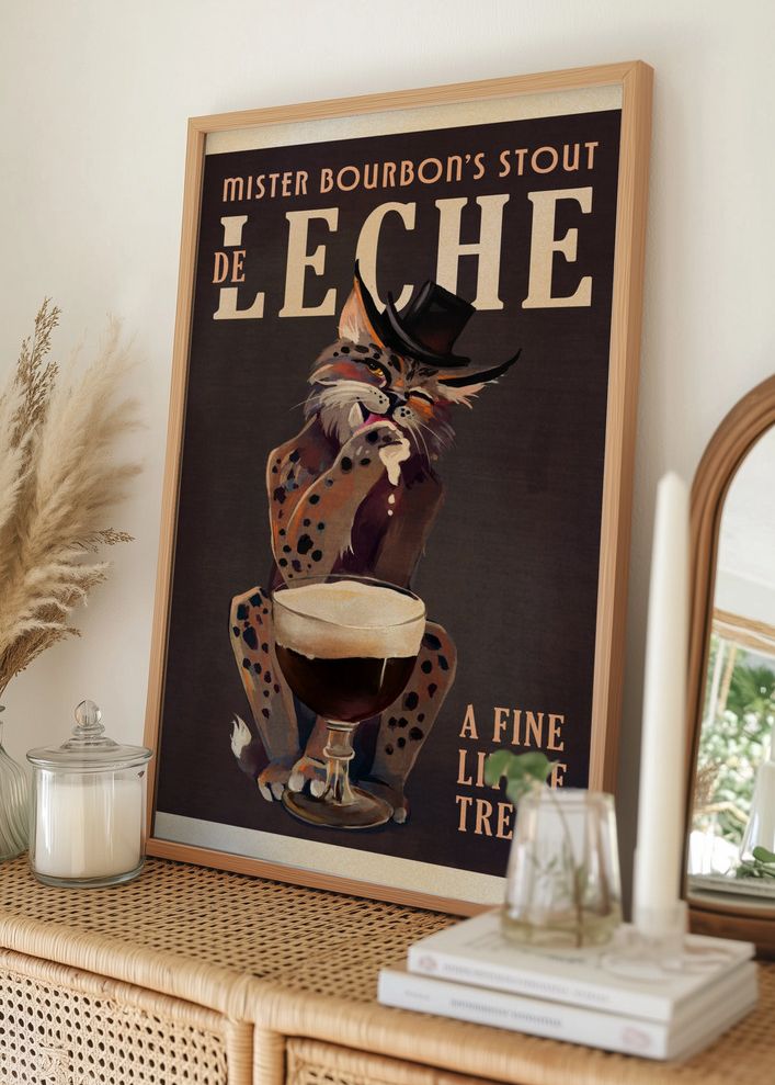 Bourbon De Leche Guinness Style Cat Art Juliste