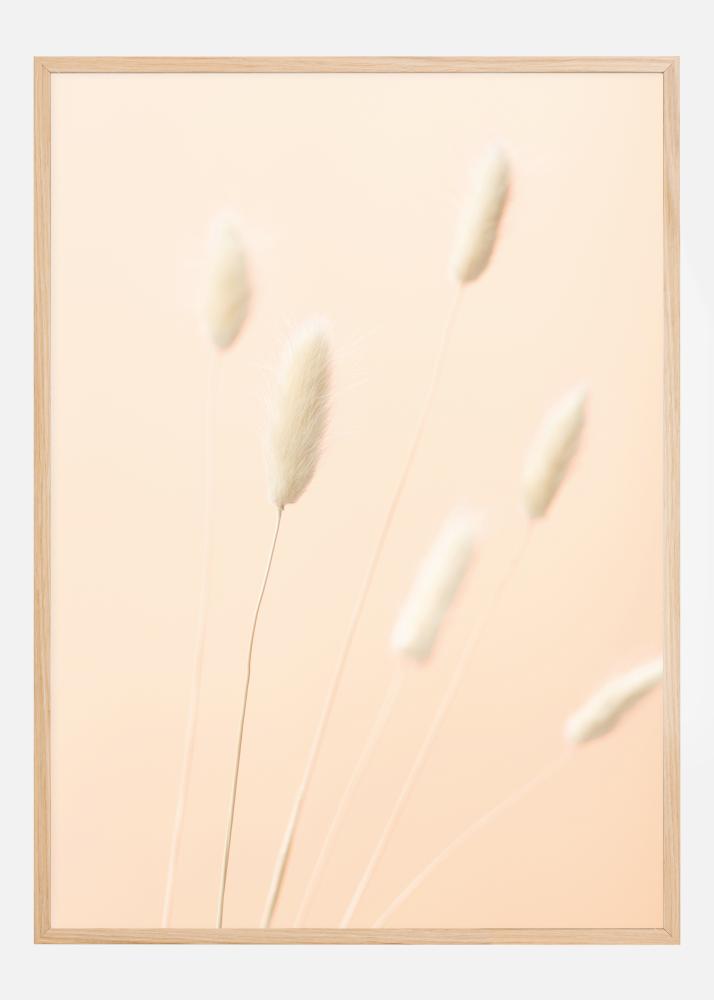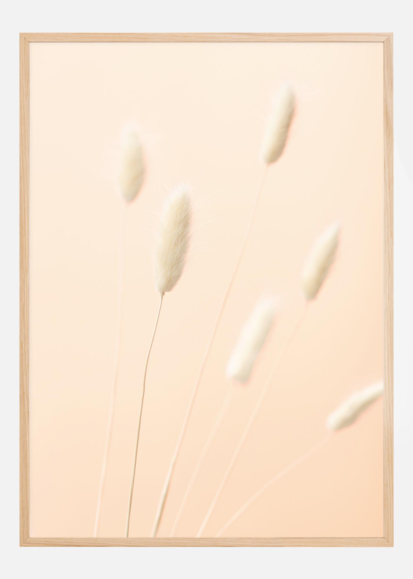 Kukkajuliste lähikuvasta pupunheinän päitä. Yksinkertainen, tyylikäs ja minimalistinen, tämä juliste saa sinut tuijottamaan pilvisiä pupunruohonpäitä tuntikausia. Lisää tämä seesteinen printti kotiisi.