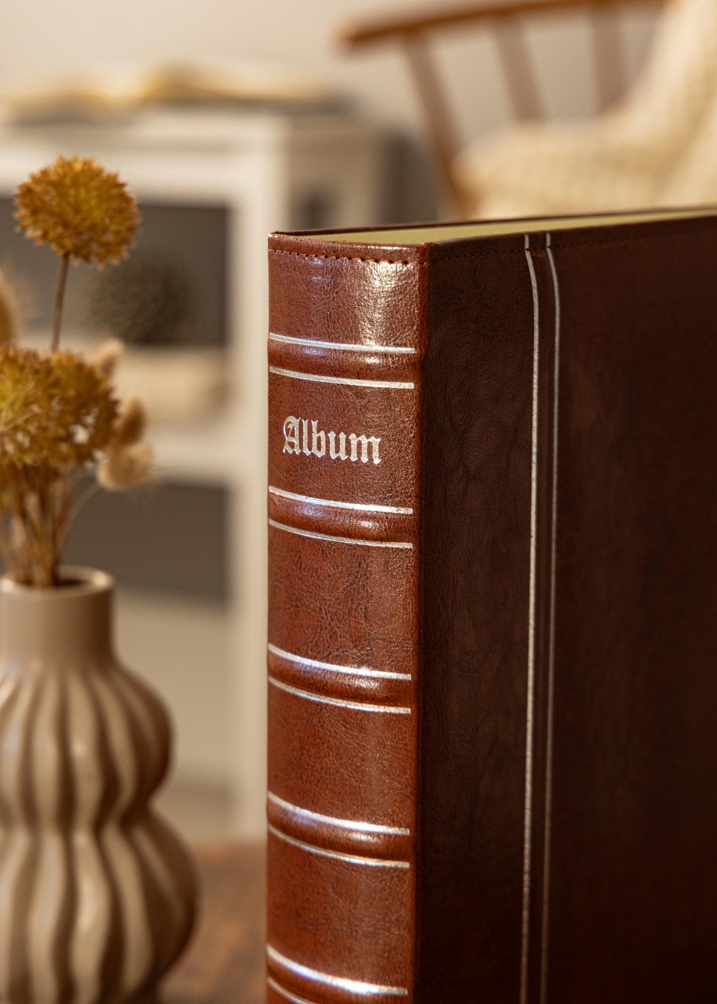 Chesterfield Gigant Rengaskansio on elegantti ja tilava albumi klassisella muotoilulla, täydellinen keräämään ja säilyttämään arvokkaimpia muistojasi. Ruskea kansio on tyylikäs, ja siinä on keinonahkapinta, jossa on kohokuvioituja yksityiskohtia ja hopeanvärisiä linjoja, jotka antavat ajattoman ja hienostuneen tunteen.