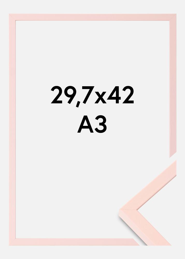 Anna leikkisää ilmettä seinillesi tällä charmantilla vaaleanpunaisella valokuvakehyksellä, joka on kooltaan 29,7x42 cm (A3). Hienovarainen 13,5 mm leveä reunus kehystää taideteoksesi tai valokuvan hienosti menemättä liian dominoivaksi, kun taas 22,5 mm syvyys antaa elegantin ja erottuvan profiilin.