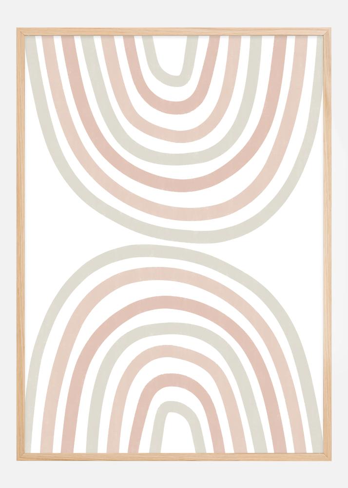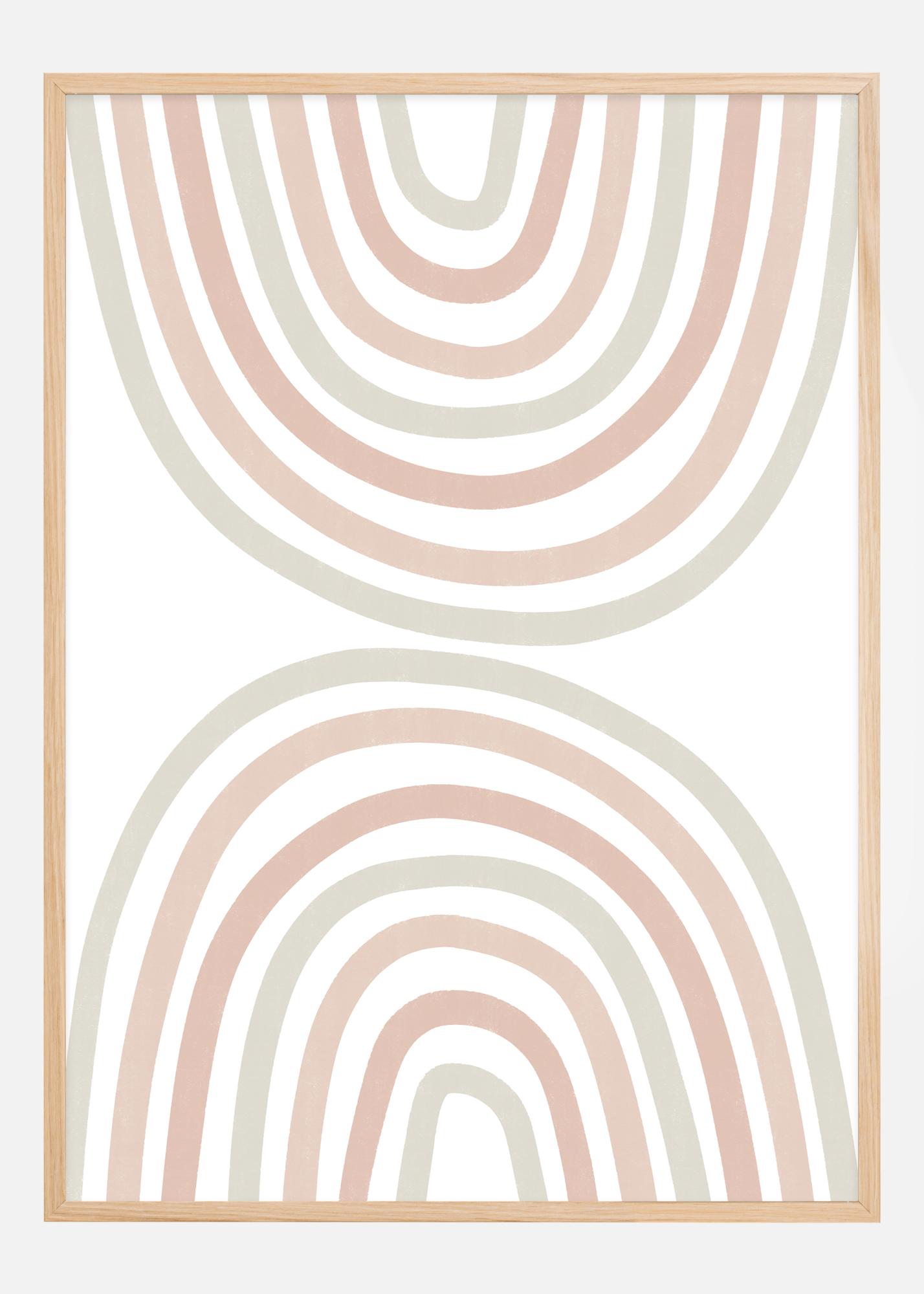 Tämä moderni ja minimalistinen juliste, nimeltään "Double Rainbow", esittää sarjan samankeskisiä kaaria, jotka muodostavat kaksoissateenkaaren rauhallisella ja rentouttavalla värimaailmalla. Pehmeät sinisen, beigen ja terrakotan sävyt ovat täydellisesti tasapainotettuja luomaan harmoniaa ja rauhaa tilaasi. Puhtaat linjat ja yksinkertainen muotoilu tekevät tästä printistä tyylikkään lisän jokaiseen moderniin sisustukseen.
