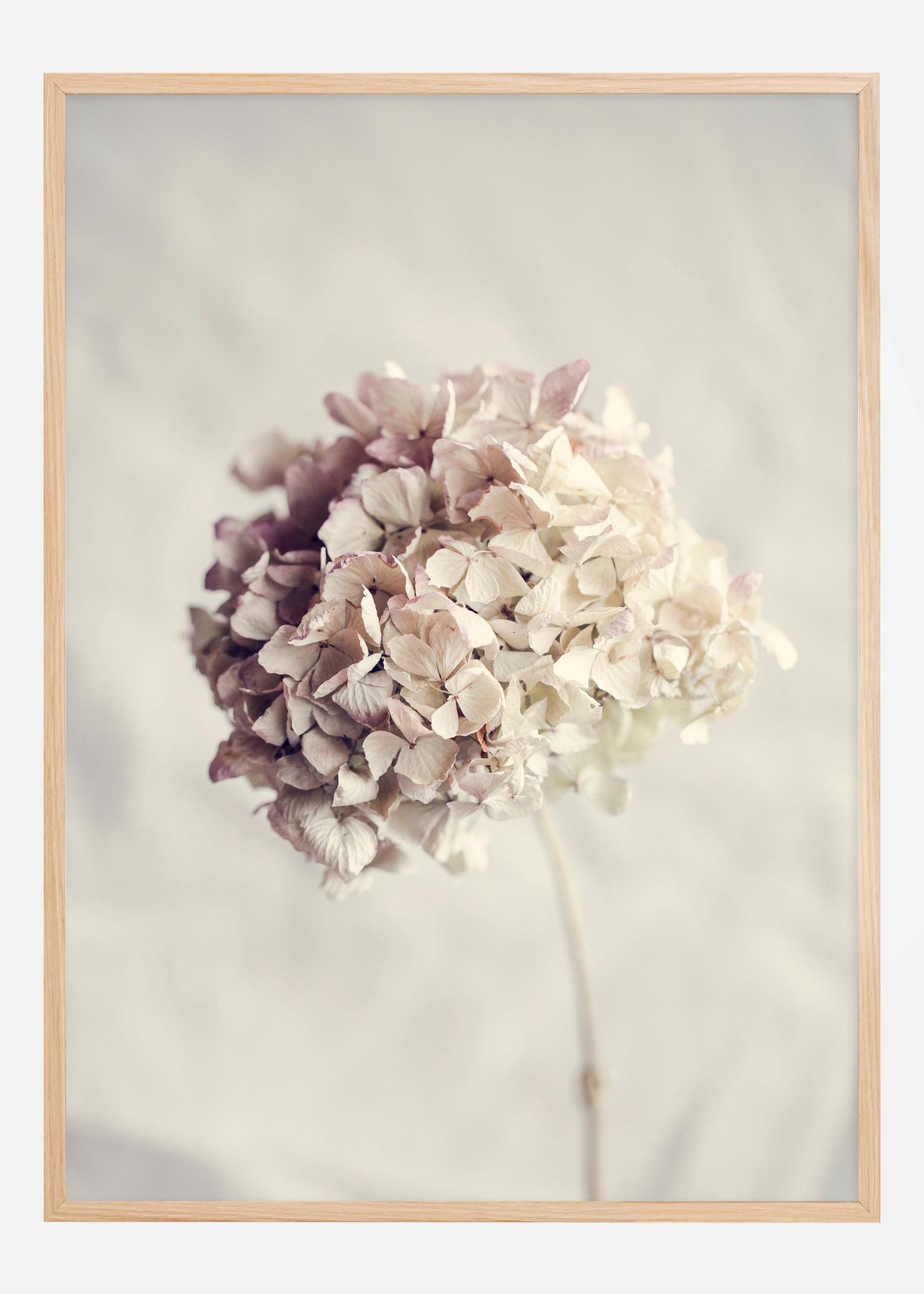 Tämä juliste esittelee herkän ja runollisen kuvan kuivuneesta hortensiasta. Sen hillityt värisävyt ja terälehtien hienovarainen tekstuuri luovat tunteen nostalgiasta ja ajattomasta kauneudesta. Tämä printti on kunnianosoitus luonnon katoavaisuudelle ja kauneudelle, jota elämän ohimenevät hetket tarjoavat.