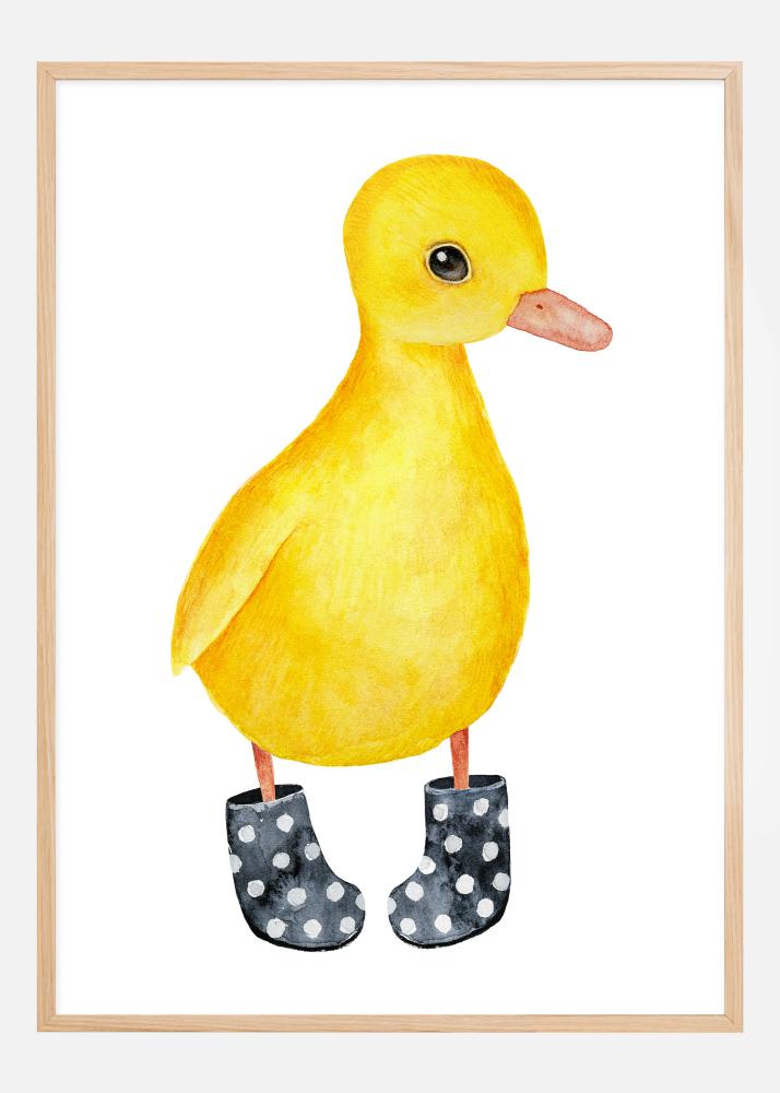 Löydä viehätys viehättävässä ankka-julisteessamme, joka levittää iloa ja soittaa ovelien oivallusten säveliä. Tämä hurmaava kuva esittää suloisen, keltaisen untuvan peittämän ankanpoikasen, joka on pukeutunut pilkullisiin kumisaappaisiin – kuva, joka varmasti houkuttelee esiin hymyjä. Se on leikkisä printti, joka sopii täydellisesti lastenhuoneeseen tai valoisana ja iloisena yksityiskohtana mihin tahansa kotiin, tuoen mukanaan ilon ja viattoman seikkailunhalun tunteen.