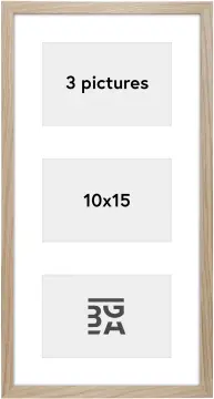 Kehyksen minimalistinen muotoilu takaa sen, että kuva-aiheesi pääsee oikeuksiinsa ja katseen keskipisteeksi. Tätä kehysmallia valmistetaan useassa eri koossa ja värissä. Tähän vaaleaan pähkinäpuiseen versioon mahtuu kolme 10x15 cm kokoista kuvaa.