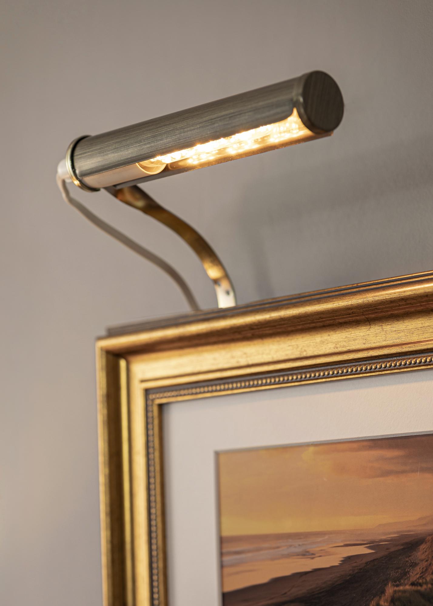Mihin tauluihin valaisin sopii? Normaalisti kiinnität taulun valaisimen kehyksen takaosaan, mutta tämä vaatii useimmiten leveäprofiilisen puukehyksen jotta voit ruuvata valaisimen kiinni. Seinäkiinnityksellämme sinun ei tarvitse huolehtia siitä, koska tauluvalaisin asennetaan suoraan seinälle taulun taakse.