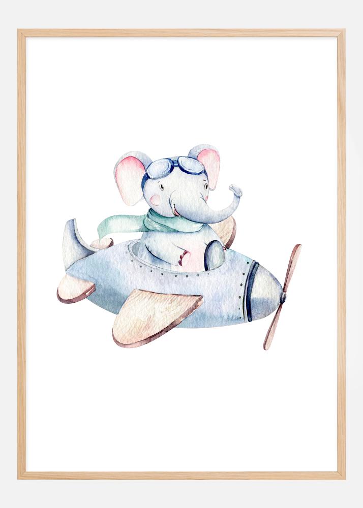 Vangitse mielikuvituksen lento tällä viehättävällä julisteella, jossa seikkaileva pieni norsu lähtee ilmaan vintage-lentokoneessa. Täydellinen herättämään nuorten ja nuorekkaiden sydänten seikkailuhaaveet, tämä printti tarjoaa ihastuttavan yhdistelmän leikkisyyttä ja nostalgiaa. Sinisävyinen kuvitus, joka on vahvistettu norsun iloisella hymyllä ja lentäjänlaseilla, tuo mieleen taivaallisia seikkailuja ja tutkimusmatkoja.