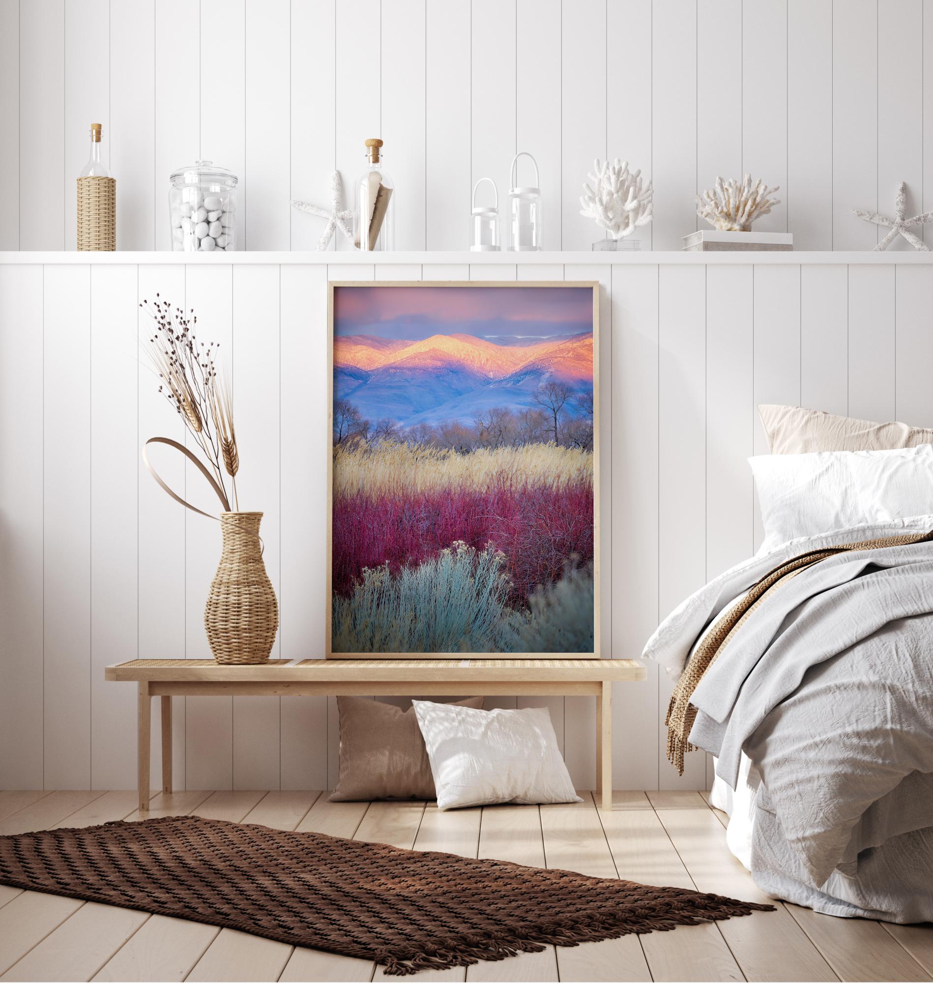Värikäs juliste peltojen kerroksista, jotka suuntaavat kohti kaukaisia vuoria. Silmää tervehtii häikäisevä joukko kirkkaita värejä, jotka vaihtelevat vihreästä, vaaleanpunaisesta, keltaisesta, sinisestä oranssiin. Aurinko kurkistaa juuri ja juuri kaukana olevien vuorten takaa. Tunne varhaisen aamun valo ja raikas päivä tässä teoksessa.