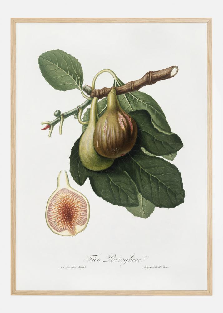 Kasvitieteellinen kuvitusjuliste viikunoista. Tunne vanhan koulukunnan tunnelma, kun ripustat tämän yksinkertaisen mutta yksityiskohtaisen piirroksen seinällesi. Akvarellimaalaus vangitsee kaikki yksityiskohdat jopa antamalla sinulle poikkileikkauksen viikunasta ja sen sisällä olevista siemenistä.
