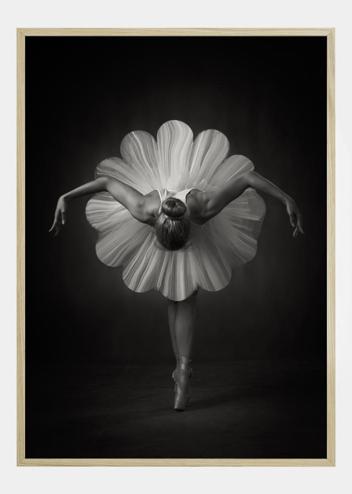 Elegantti juliste balettitanssijasta, jolla on kukkainen kukkahame. Tämä kaunis juliste herättää keskustelua abstraktista luonteestaan ja tuo ihmeen tunteen kotiisi.