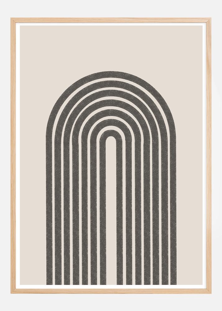 Tämä minimalistinen juliste korostaa harmonista koostumusta keskitetyistä kaarista, jotka muodostavat pehmeän geometrisen muodon, luoden rauhan ja tasapainon tunteen. Toistuvat viivat tummassa sävyssä neutraalilla taustalla muodostavat hienostuneen ja ajankohtaisen muotoilun, täydellisen modernin sisustuksen ystävälle. Värit ovat sävyllinen yhdistelmä mustaa ja luonnonvalkoista, mikä tekee tästä printistä helpon sovittaa erilaisiin sisustustyyleihin ja värimaailmoihin.