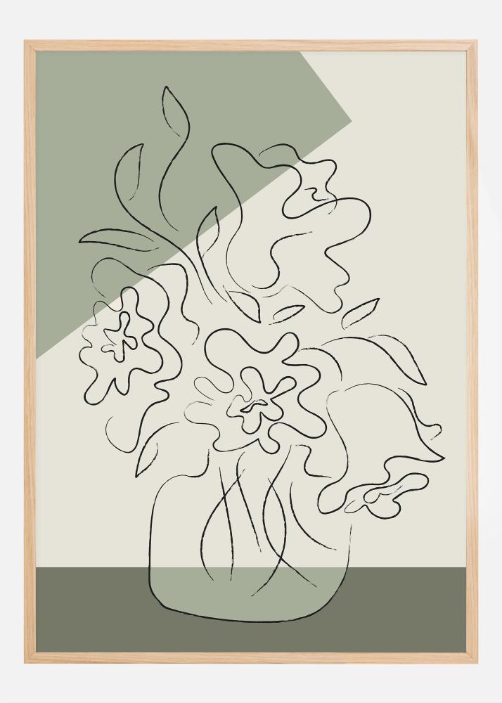Julisteen minimalistinen vetovoima harmonisoi nykyaikaisen designestetiikan kanssa ja tuo välittömän rauhan tunteen ja puhtauden mihin tahansa tilaan. Abstraktit kukkamuodot ja rajallinen viivojen käyttö kutsuvat reflektoimaan ja tarjoavat kokemuksen, jota voi arvostaa eri kulmista ja eri valaistuksessa. Tämä juliste on upea sisustusyksityiskohta kaikille, jotka arvostavat taidetta, joka puhuttelee yksinkertaisuudellaan ja rauhoittavilla väreillään.
