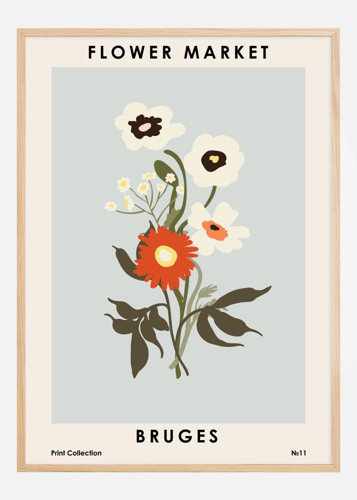 Tämä viehättävä juliste 'Flower Market' -kokoelmastamme esittelee erikoisen valikoiman kukkia, jotka vangitsevat Bruggen viehättävän ja historiallisen ilmapiirin. Lumoava kukkien kokoelma auringonkeltaisissa, syvän oransseissa ja pehmeän valkoisissa sävyissä korostettuna hillityllä harmaan sinisellä taustalla tarjoaa esteettistä iloa, joka tuo mieleen Belgian rauhalliset ja värikkäät kukkamarkkinat.