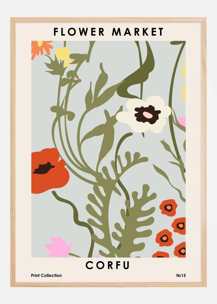 "CORFU" on painettu tyylikkäästi alareunaan, yläpuolelle "Print Collection ?15", mikä vahvistaa paikan ja kuulumisen tunnetta. Tämä printti valaisisi jokaisen tilan ja toisi kotiisi palan Välimeren viehätystä. Värimaailma on saanut inspiraationsa Korfun rikkaasta kasvistosta, tuoden väripilkun ja visuaalista mielenkiintoa mihin tahansa ympäristöön, johon se sijoitetaan. Se on täydellinen juliste kaikille, jotka haluavat ympäröidä itsensä Korfun aurinkoisten rantojen ja elävien kukkamarkkinoiden muistolla.