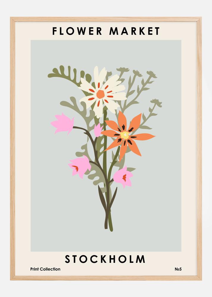 Tämä juliste esittää Tukholman kukkamarkkinat, raikkaalla ja luonnonläheisellä suunnittelulla, joka vangitsee kaupungin sykkivän kauneuden ja vehreyden. Tässä printissä valon leikki kukkien ja lehdistön välillä harmonisoi, tuoden eloon kuhisevat aiheet, jotka on kuvattu valkoisen, vaaleanpunaisen ja oranssin sävyissä, pehmeän siniharmaata taustaa vasten. Se on kunnianosoitus skandinaavisen pääkaupungin rakkaudelle luontoon ja sen kyvylle yhdistää perinne ja moderni muotoilu.