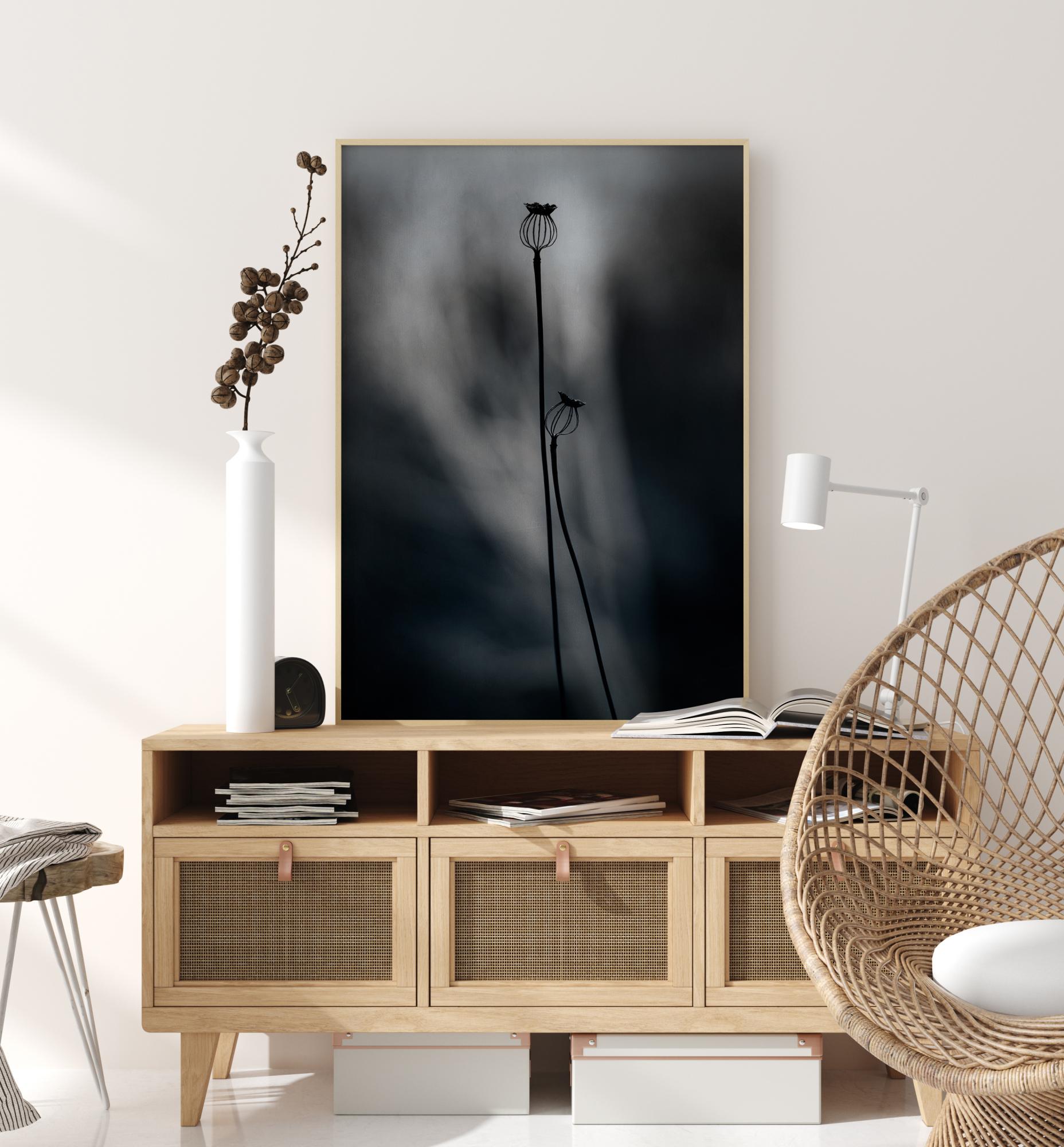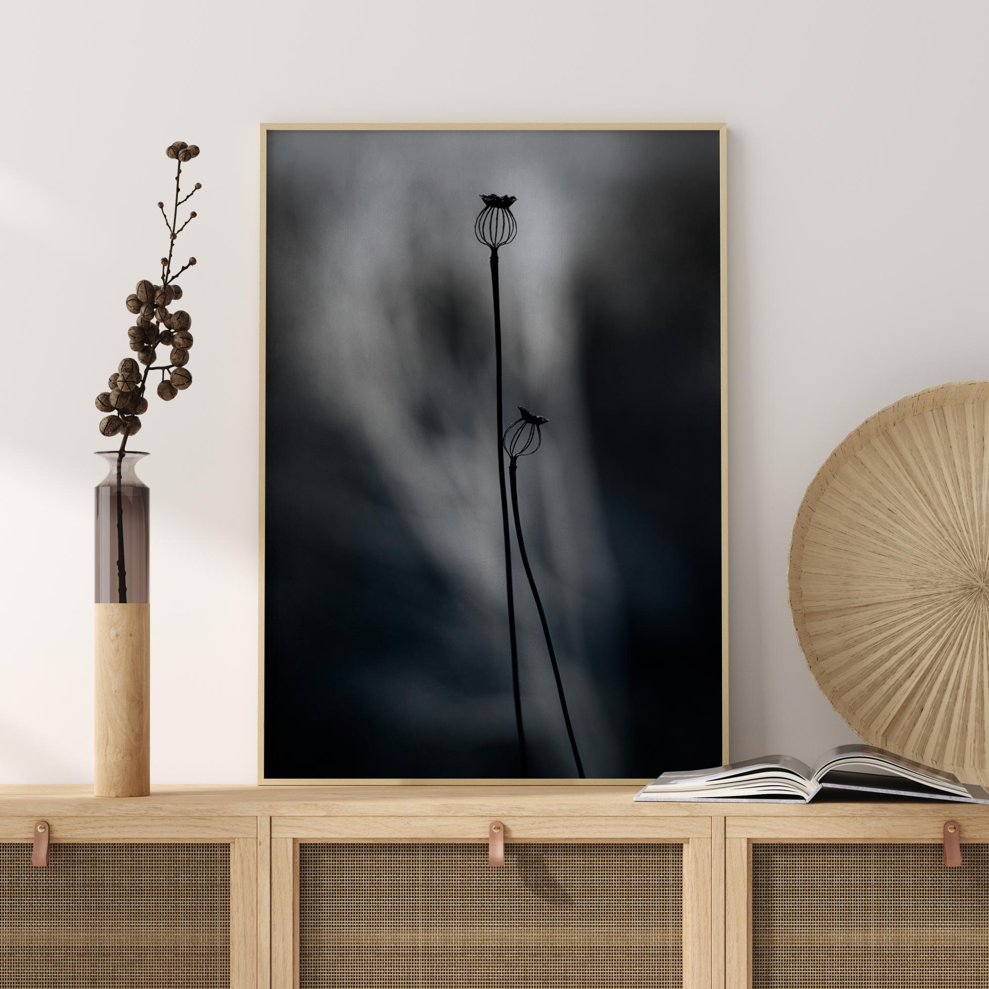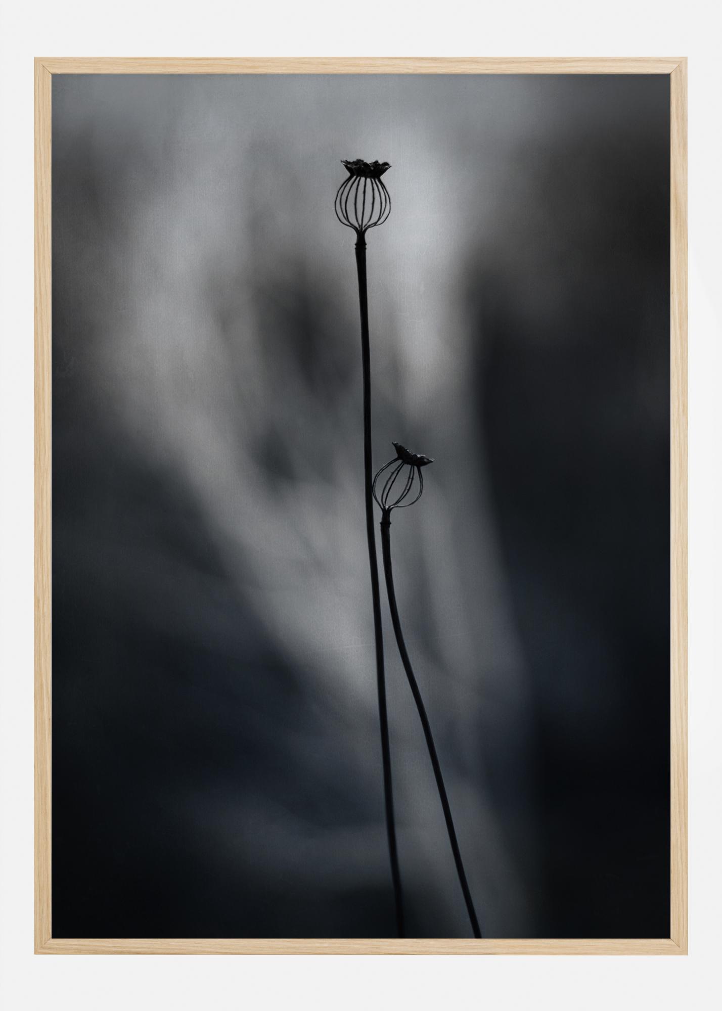 Eteerinen juliste, jossa on kaksi unikkoa, joiden takana on kevyesti hämärtynyt tausta. Tämä abstrakti kuva saa sinut tuijottamaan tuntikausia. Tuo tämä upea staattisuuden ja liikkeen sekoitus kotiisi.